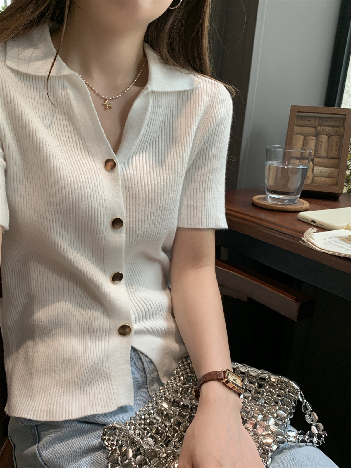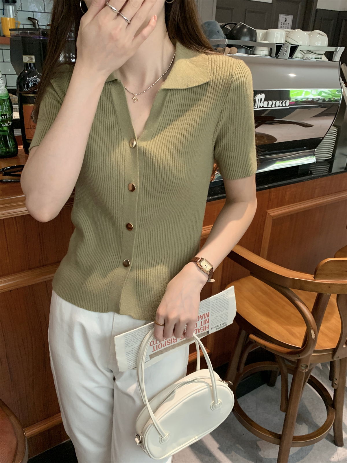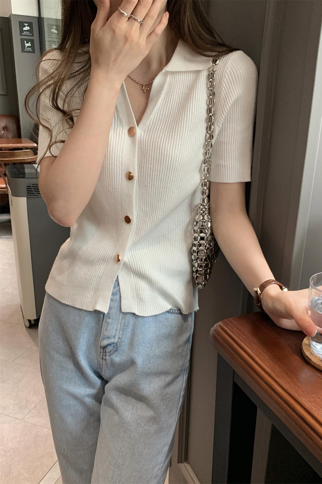 여름 여름 한국어 버전의 슬림 래그 숄더 대비 색상 스 플라이 싱 슬림 디자인 순수면 단락 티셔츠 탑