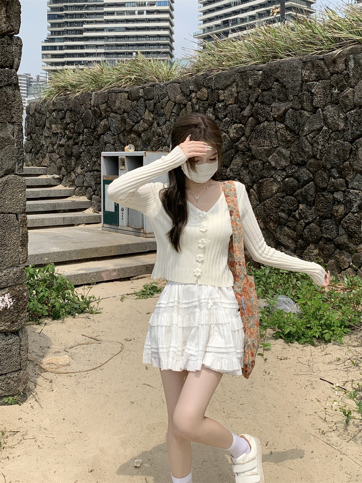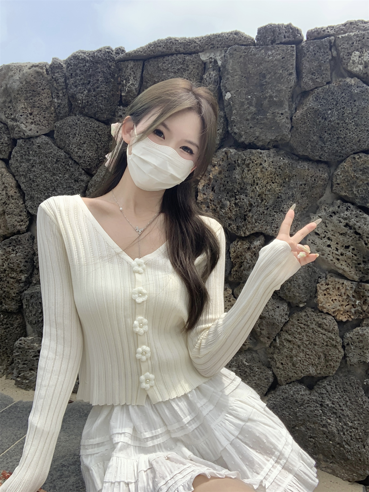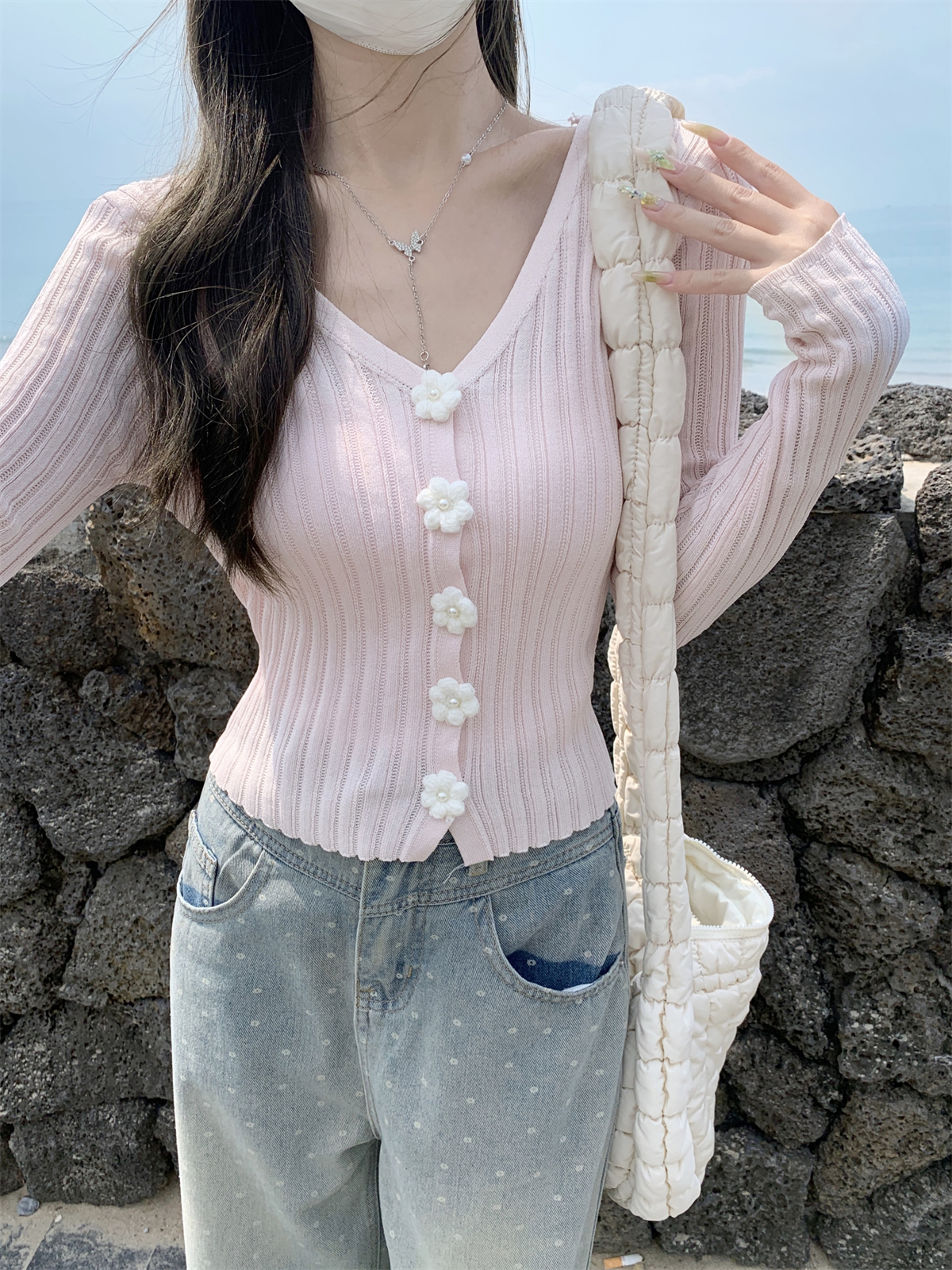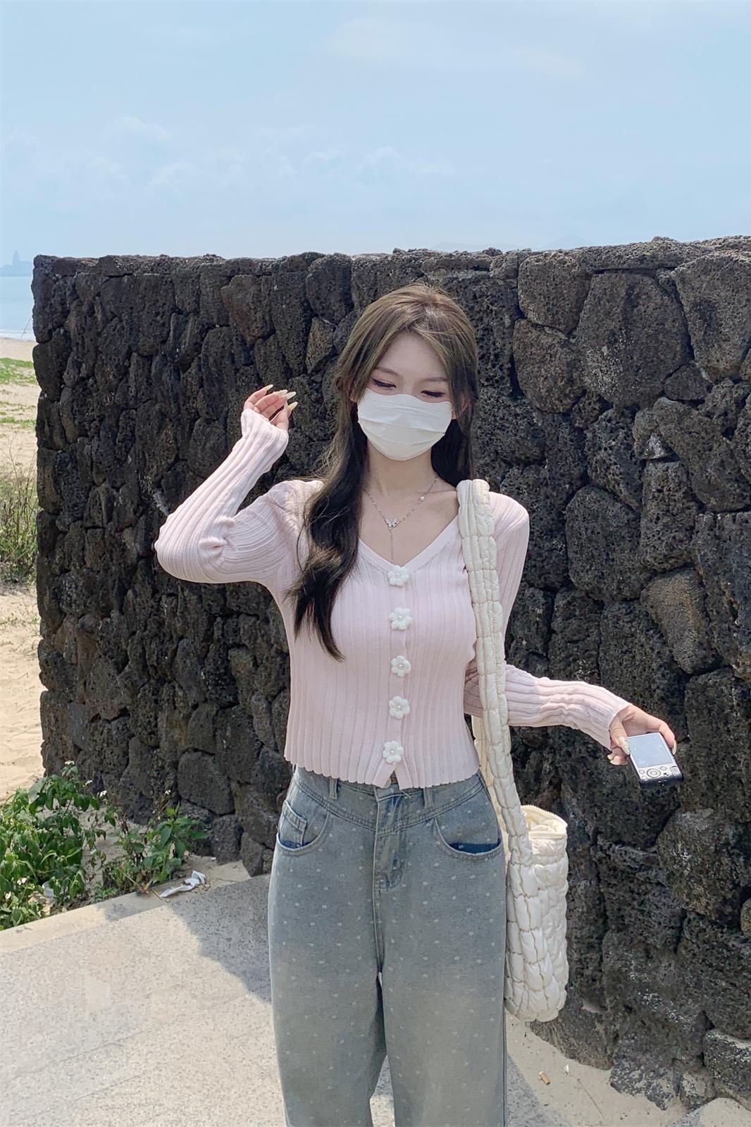 여름 한국 스타일 폴로 칼라 단일 가슴 카디건 6 양모 얇은 니트 짧은 슬리브 탑
