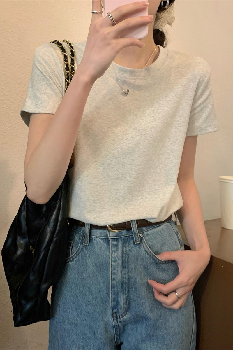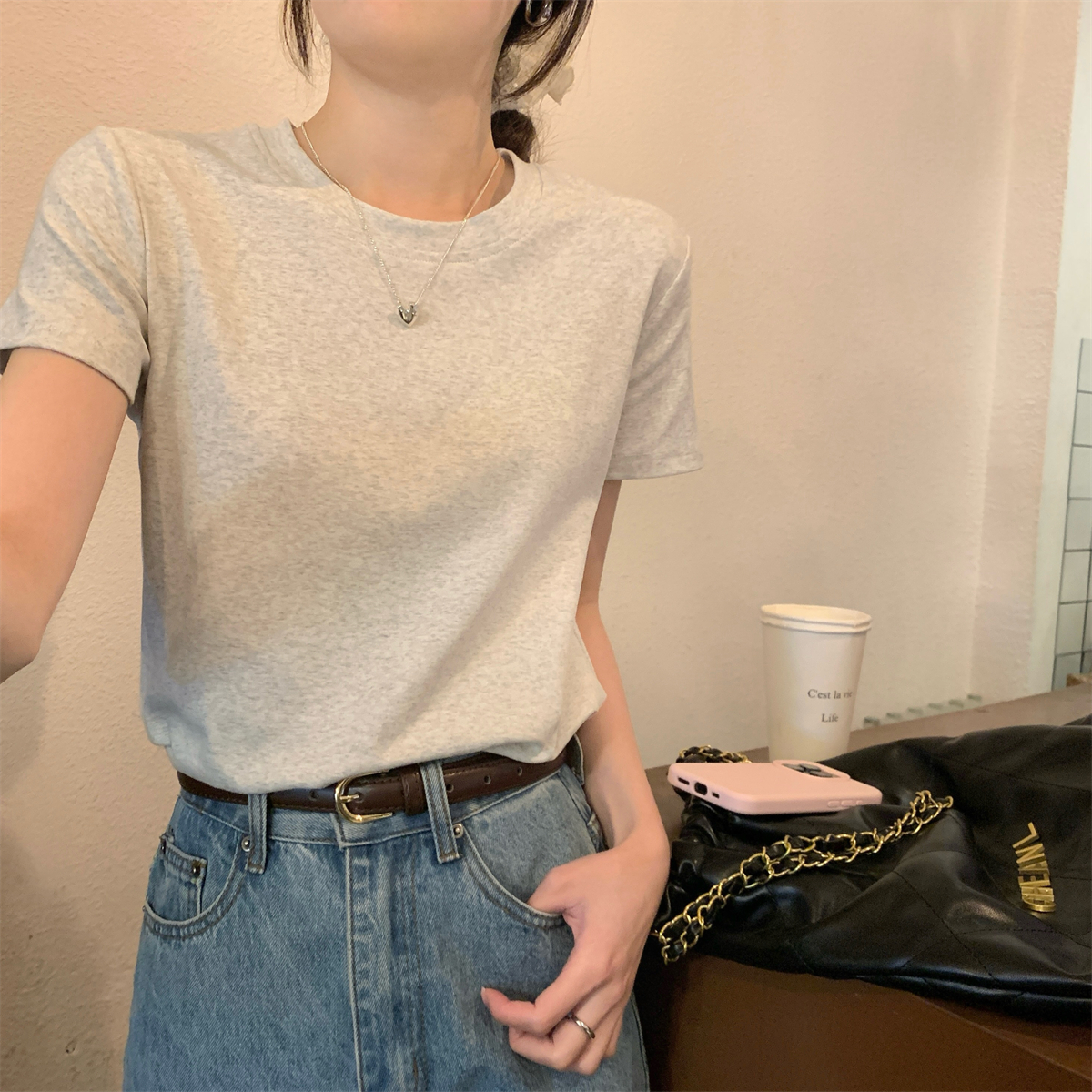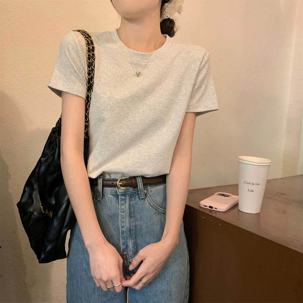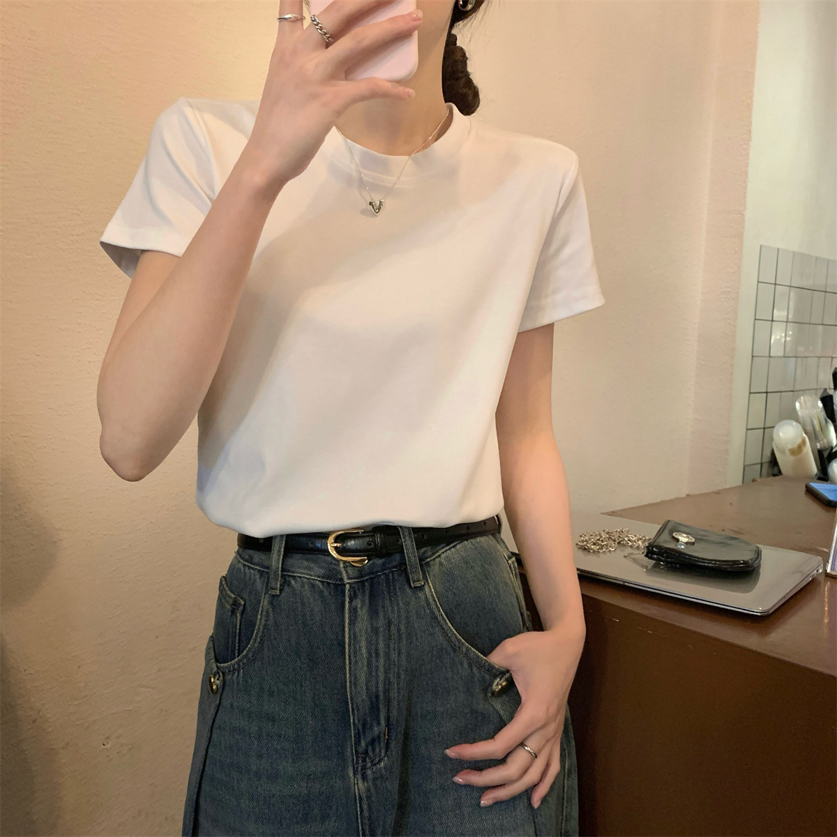 실제 사진 여름 여름 의 헝겊 어깨 대비 색채 격자 무늬 편지 자수 고급 순수면 단락 티셔츠 탑