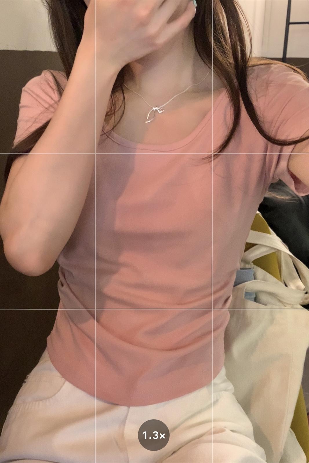 봄 여름 슬림하고 순수한 색상 대비 버튼 짧은 다목적 순수면 단락 티셔츠 여성.