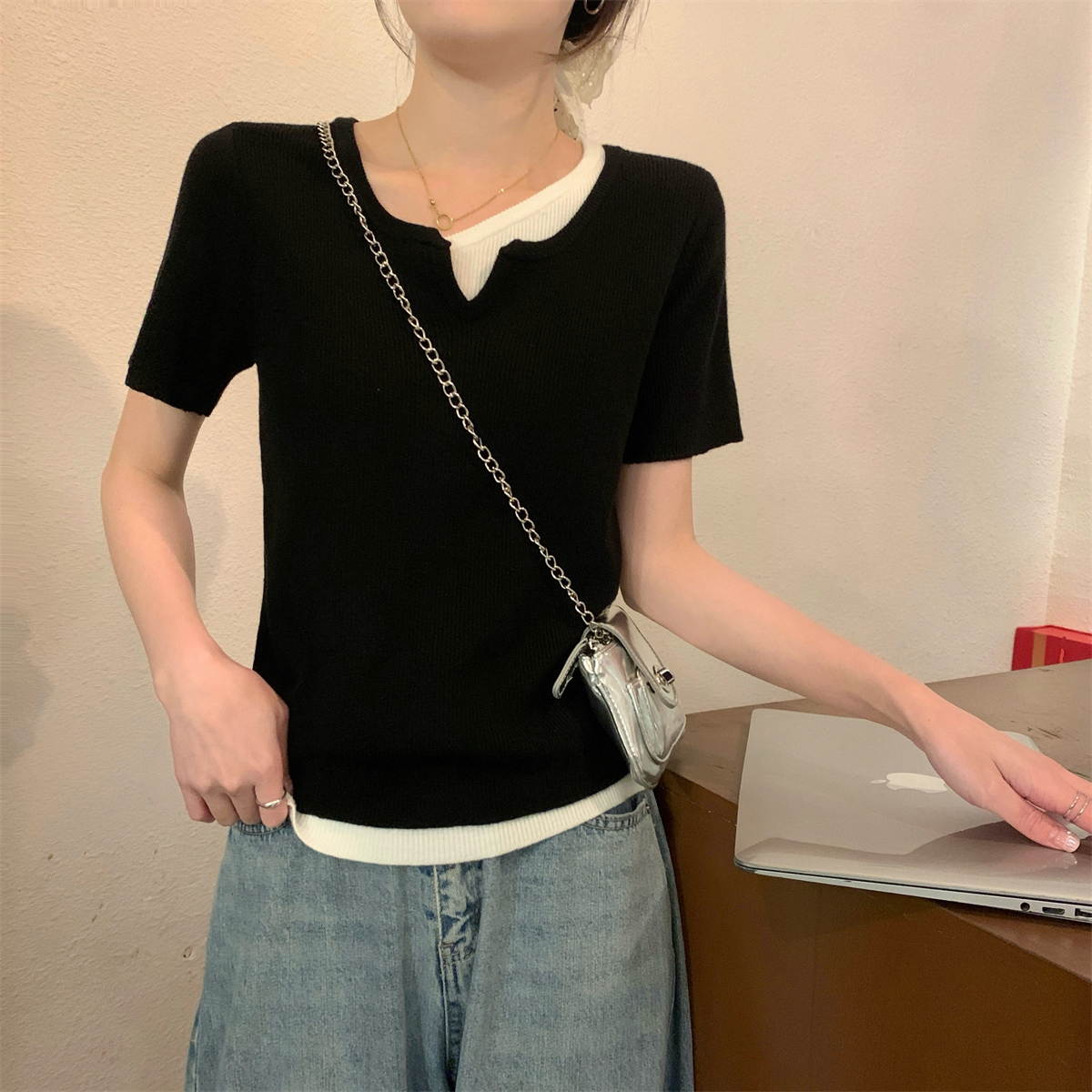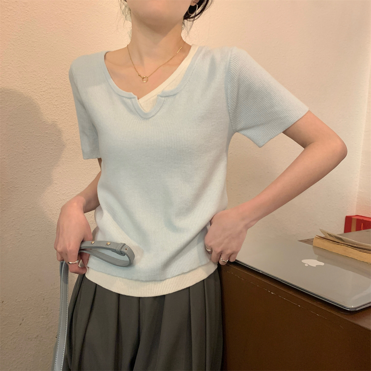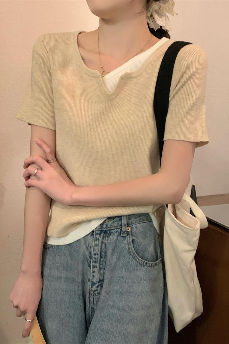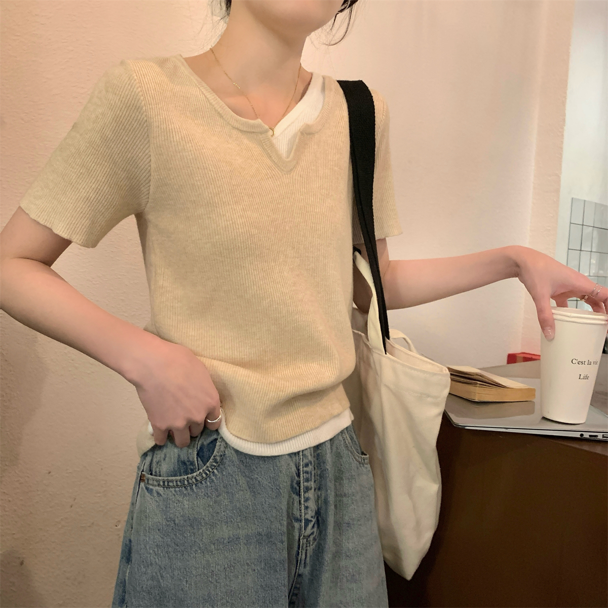 여름 어깨 라운드 목 단색의 여름 여성 티셔츠를위한 기본적인 순수한 면화 단점 탑