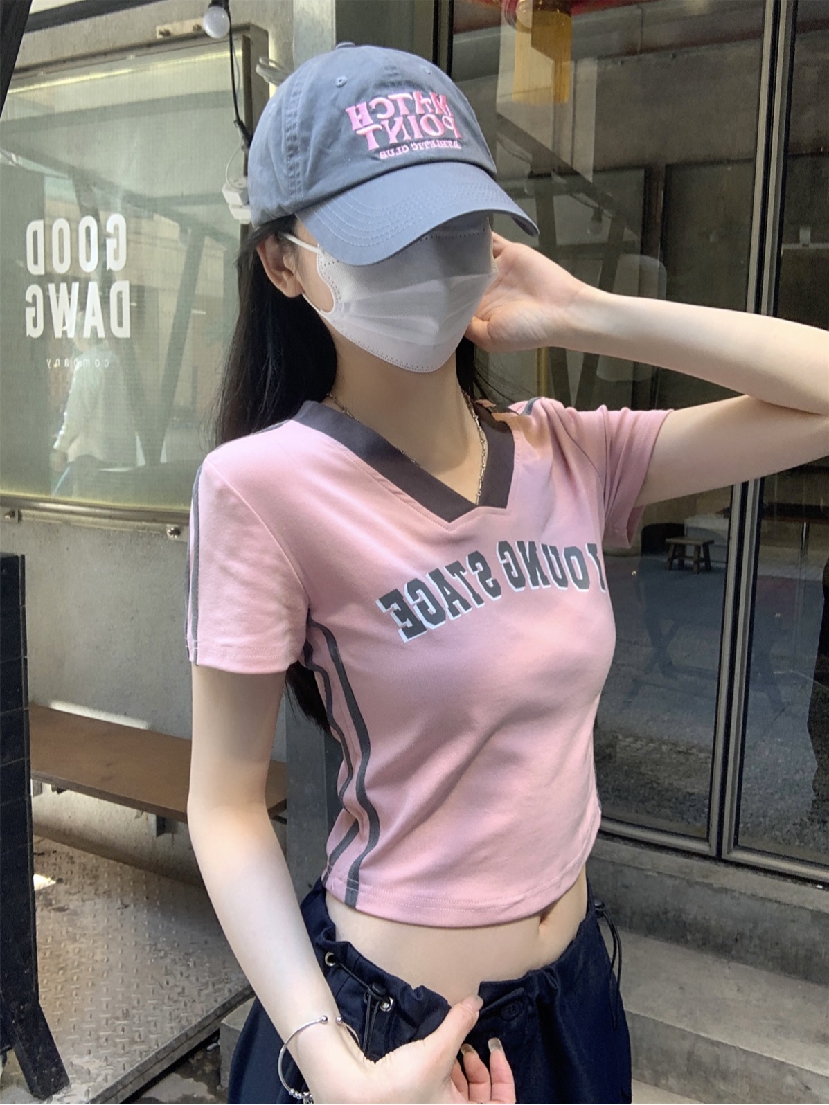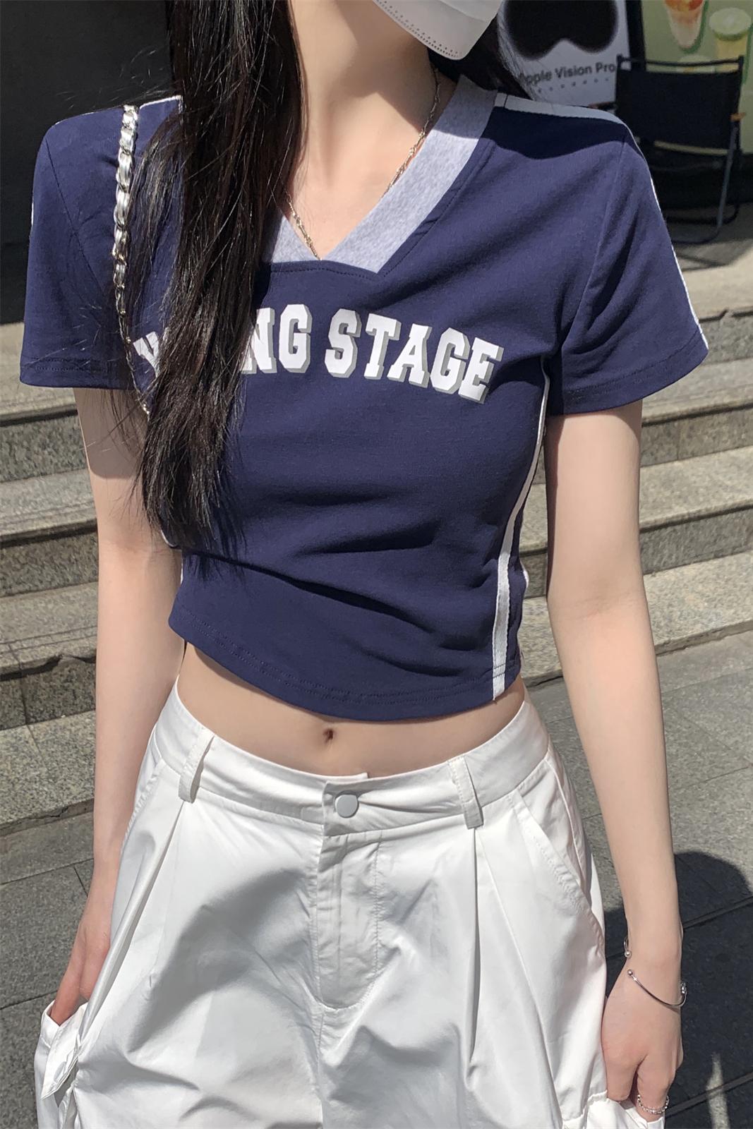 폴로 칼라 버튼 디자인의 봄 여름 한국어 버전의 앤디 벨벳 다목적 니트 짧은 소매 탑