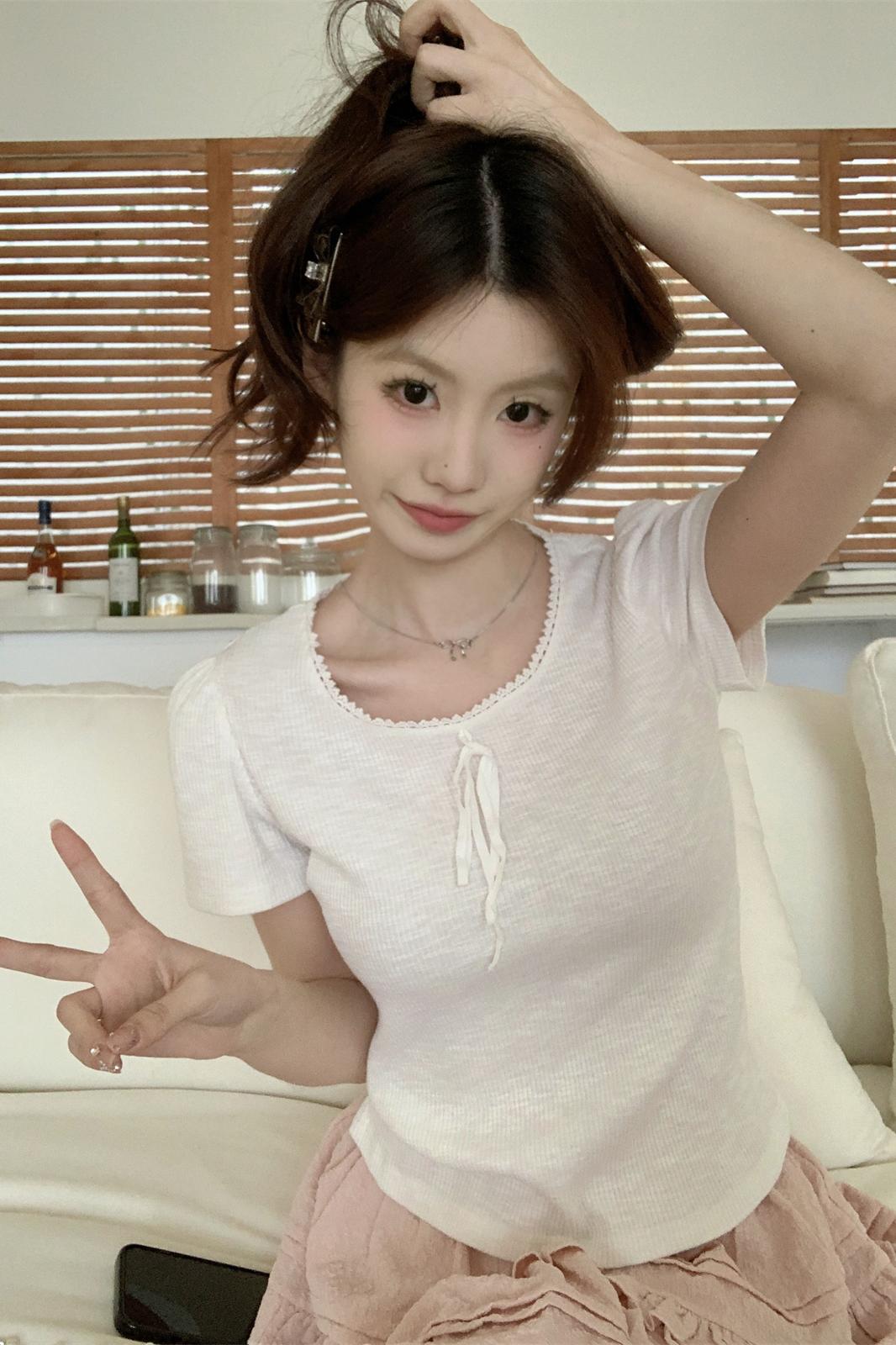 여름 한국어 버전 BM 순수 욕망 u-neck 레이스 스 플라이 싱 구덩이 스트립을 보이게합니다.