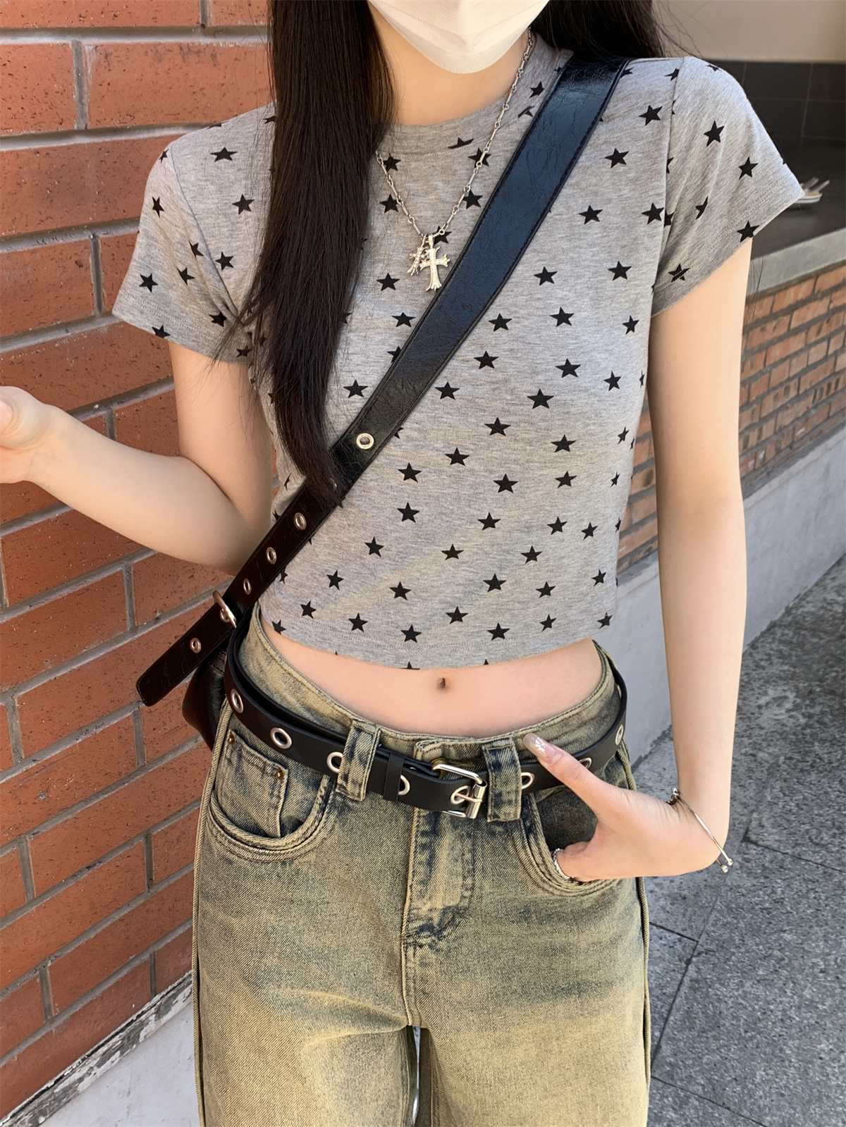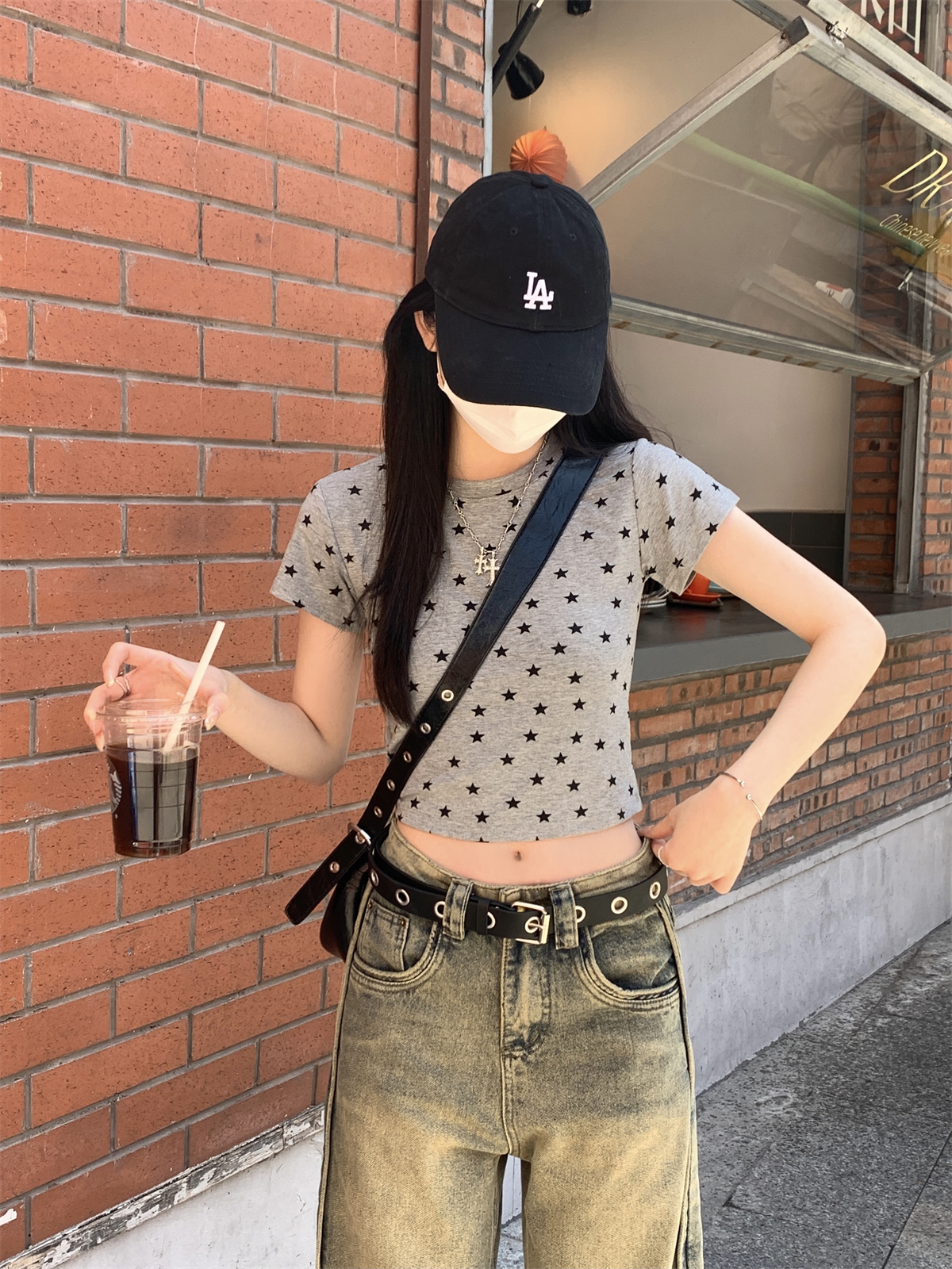 실제 촬영 및 실제 여름 여름 한국어 버전의 스퀘어 칼라 순수하고 정욕적인 짧은 스타일 다목적 니트 짧은 슬리브 탑