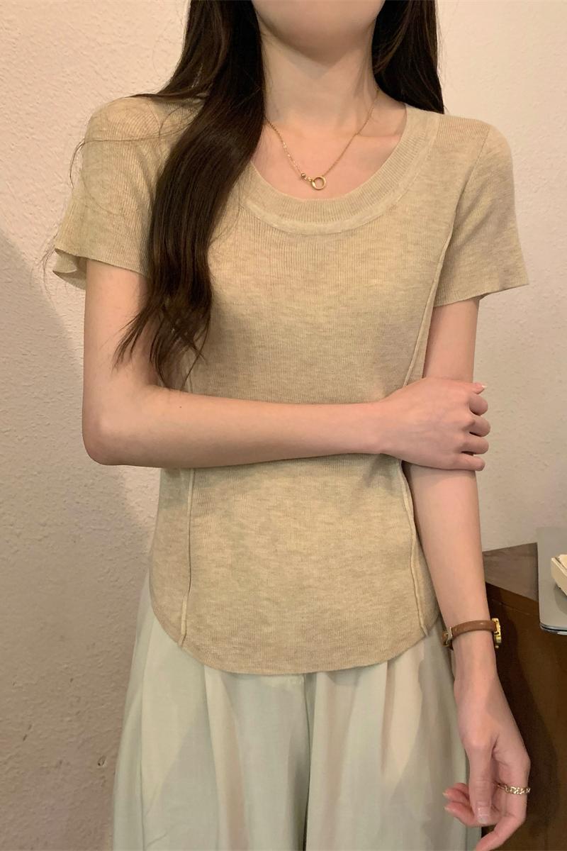 실제 사진 여름 한국 BM 순수 버튼 디자인 순수 면화 간단한 다목적 탑 짧은 슬릿 티셔츠