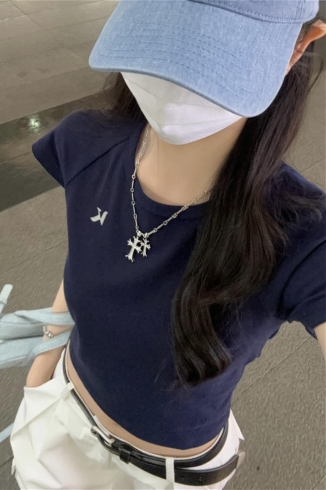 실제 사진 여름 한국 스타일 스퀘어 칼라 뼈 고급 디자인 앤디 벨벳 니트 짧은 슬리브 탑