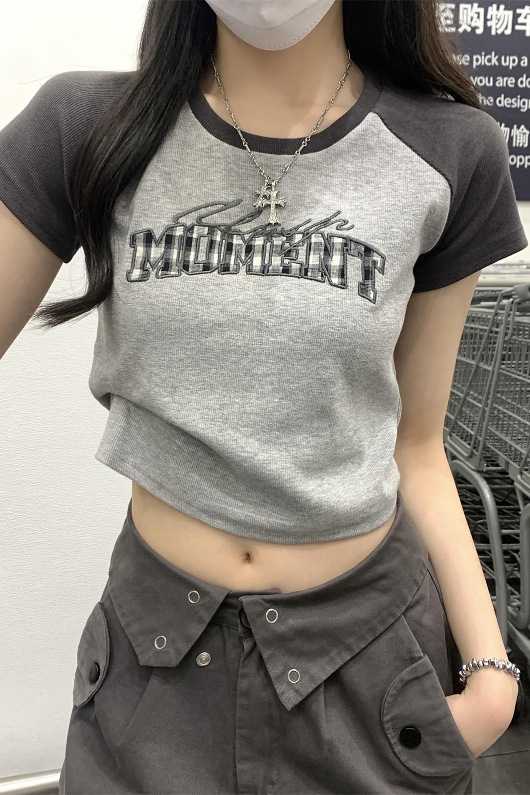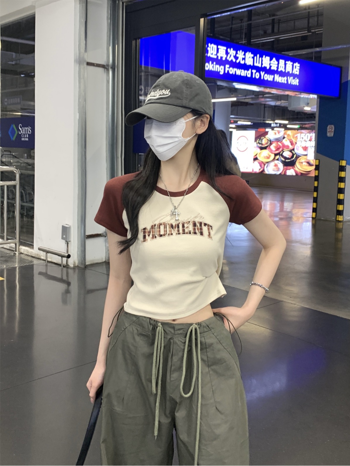 여름 한국 스타일 스퀘어 칼라 구덩이 스트립 단색 다목적 앤디 벨벳 니트 짧은 소매 탑