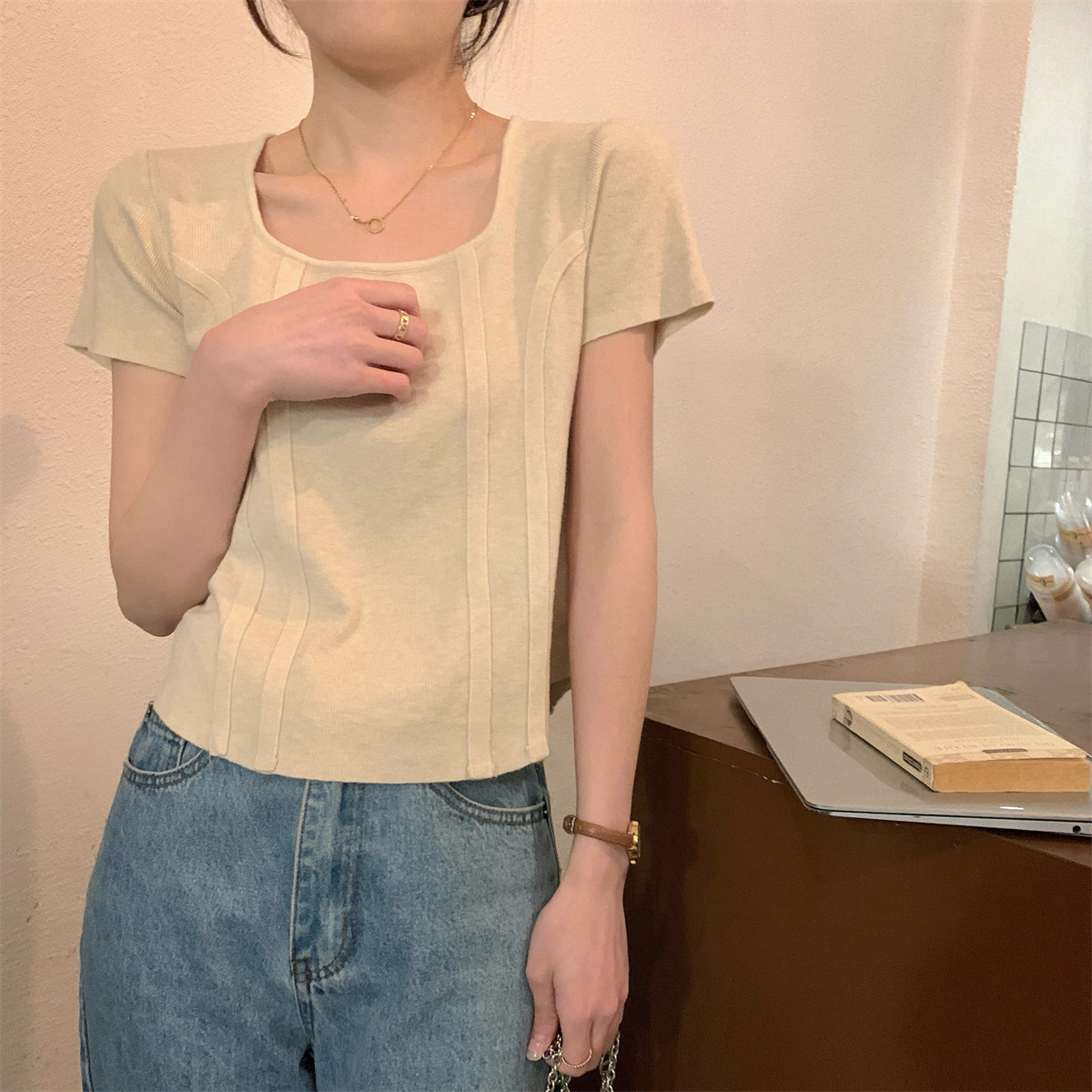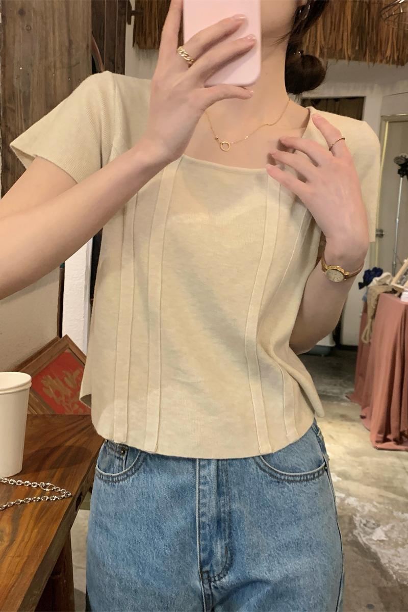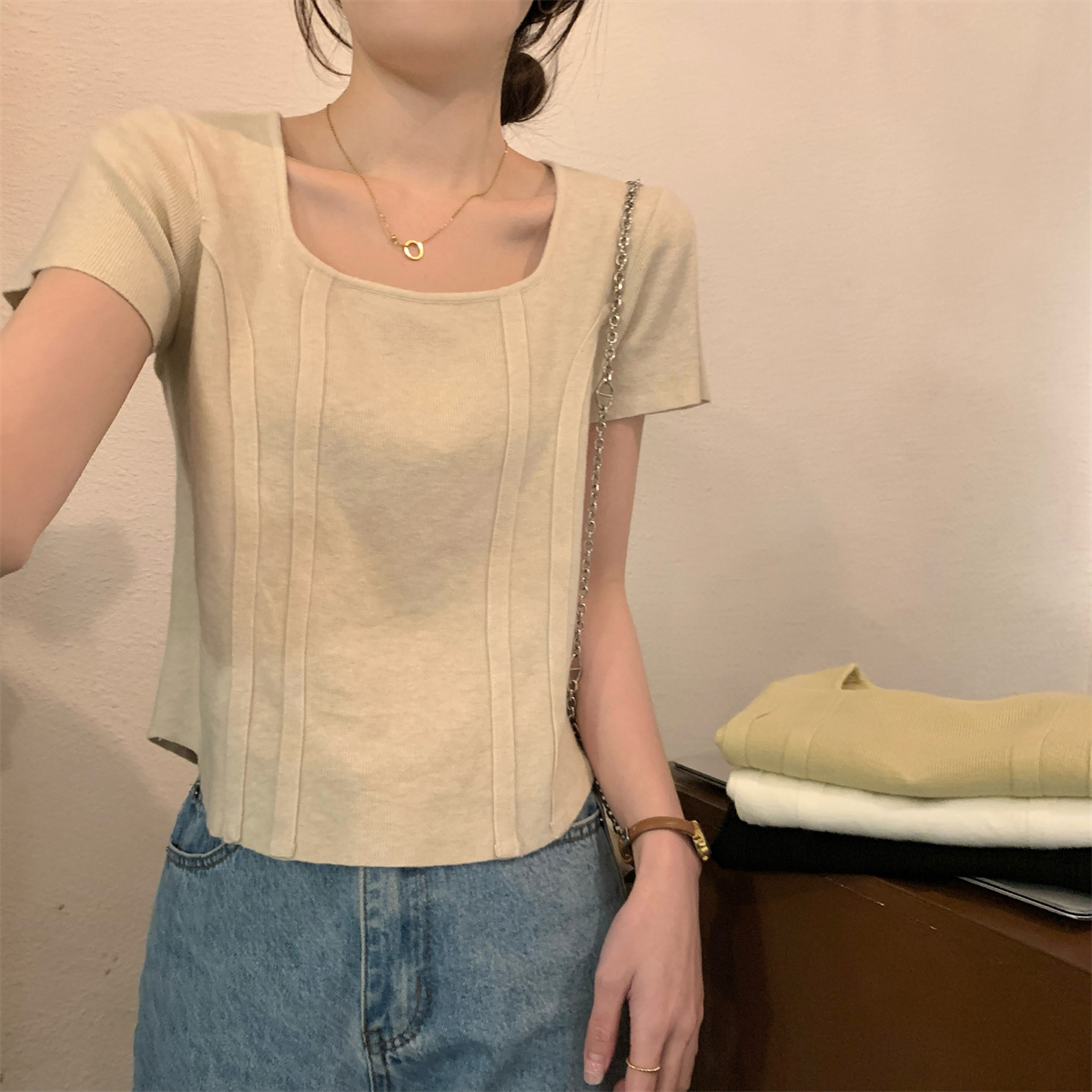 봄 여름 의 직선 어깨 둥근 목 단위 단순하고 다재다능한 순수한 면화 단점 탑