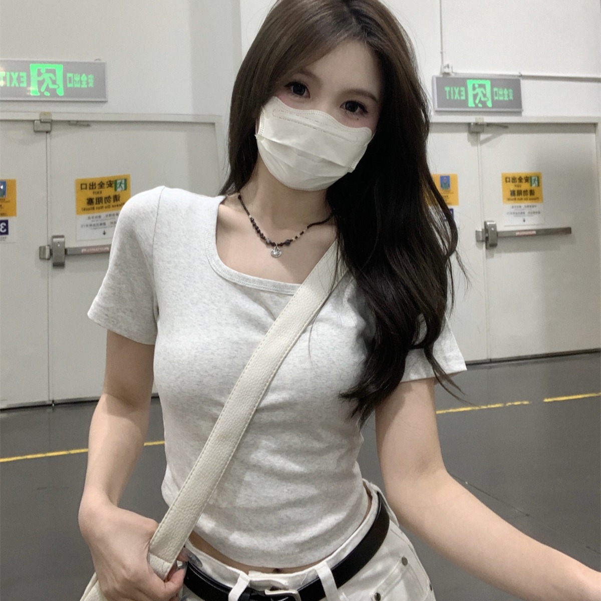 스프링 의 슬림 기질 반 오픈 칼라 디자인 다목적 순수면 긴팔 탑 티셔츠