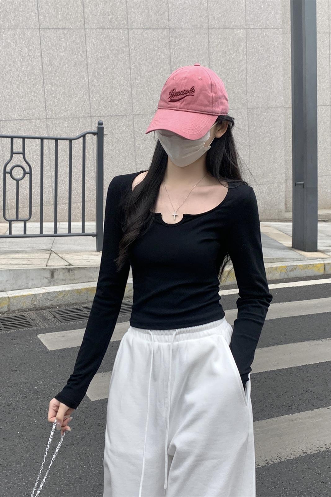 실제 사진 봄 여름 의 BM Square Collar Button Floral Sweet Design Pure Cotton Short-Sleeved T-Shirt Top