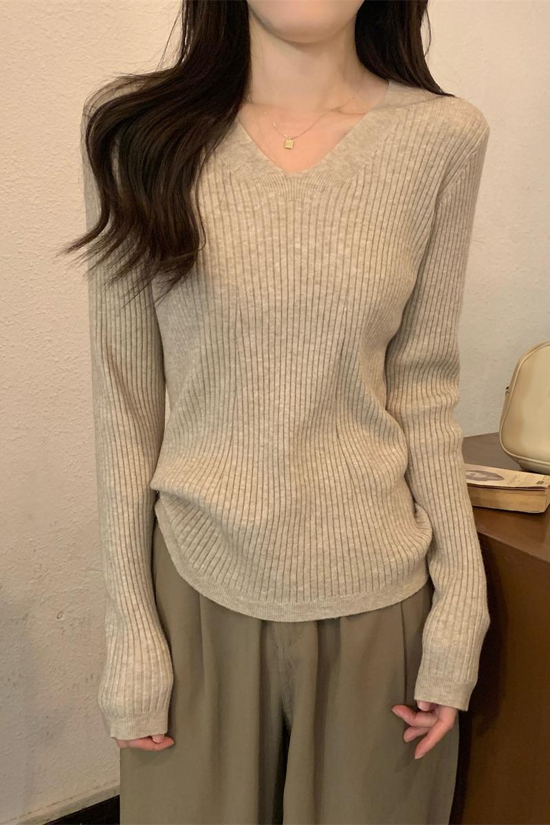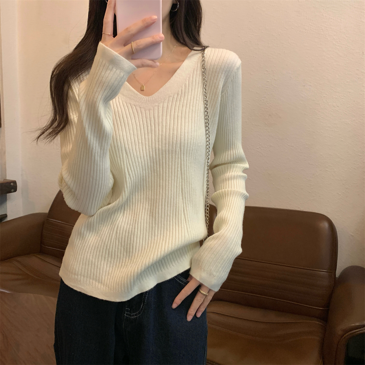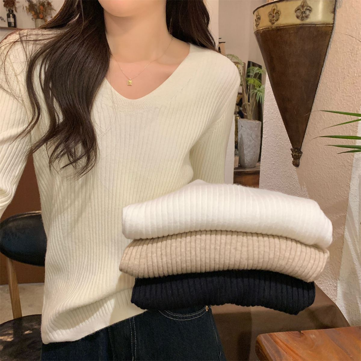 가을 겨울 슬림 및 다목적 래그 어깨 디자인 두꺼운 내부 니트베이스 스웨터의 실제