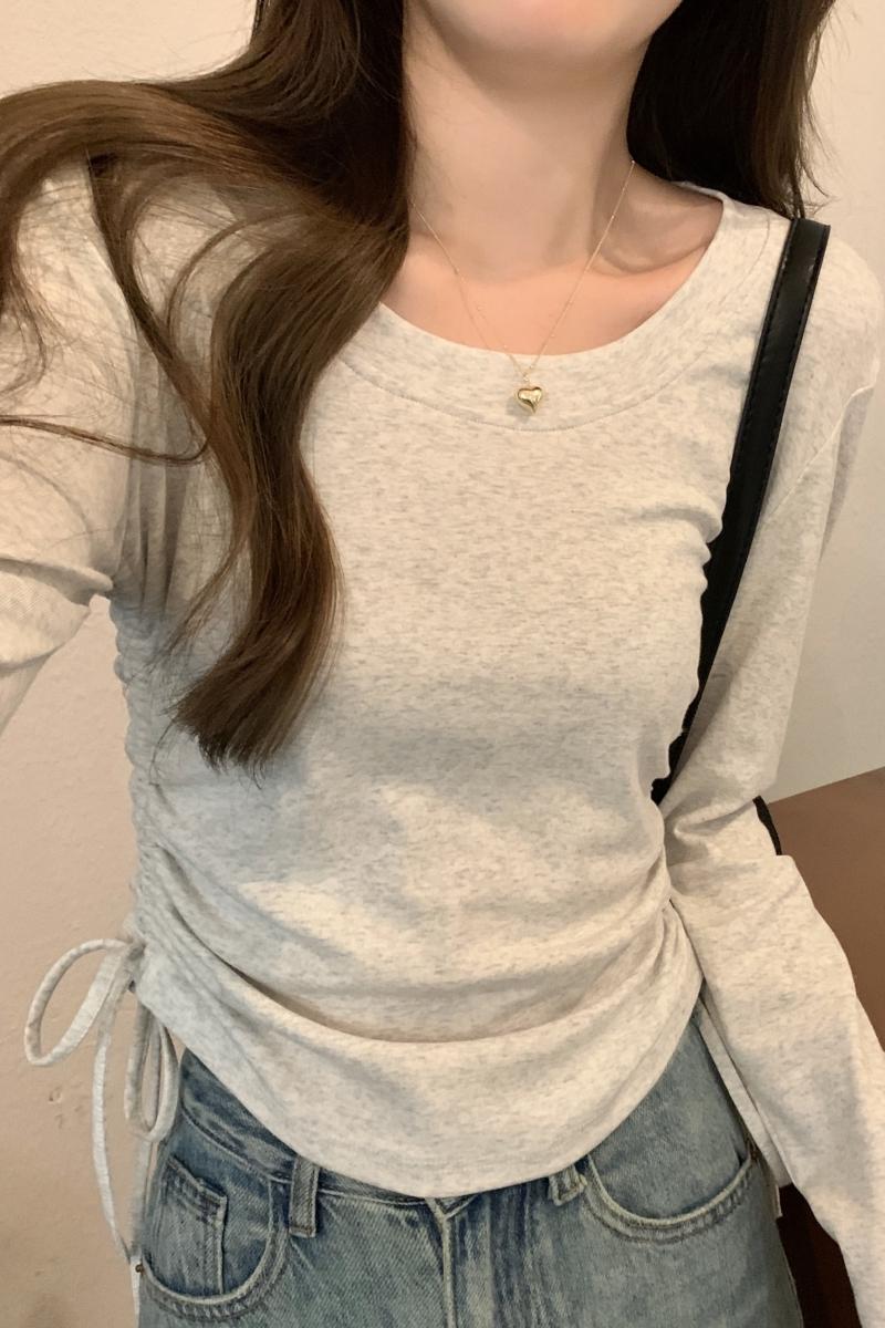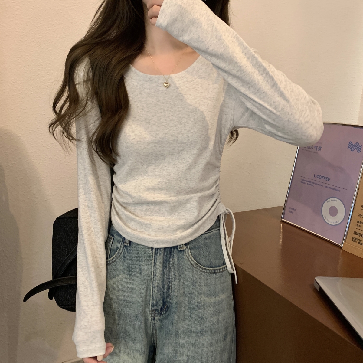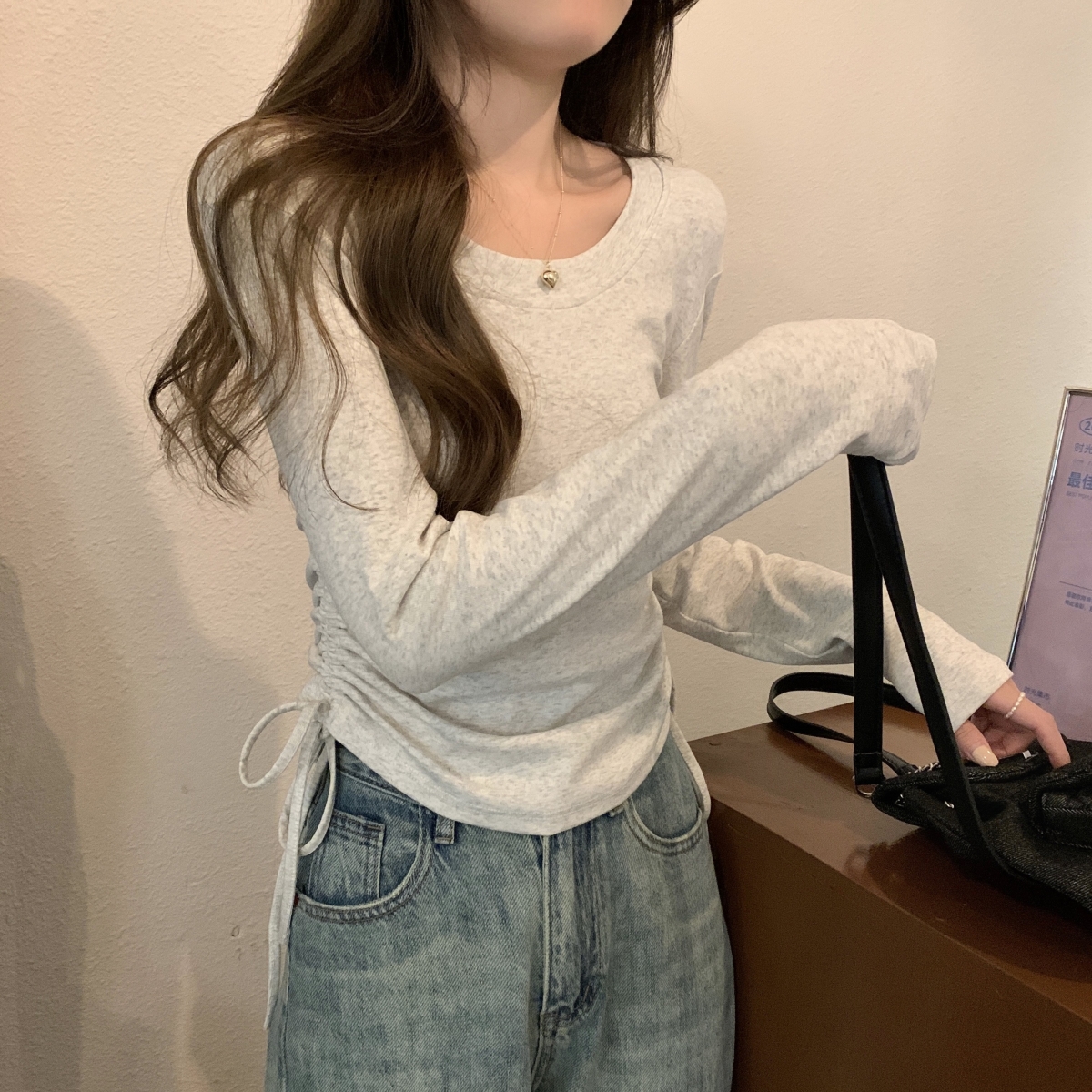 가을 겨울 슬림 회색 헝겊 어깨의 실제 한국어 버전 슬림 디자인 두꺼운 내부 니트베이스 스웨터