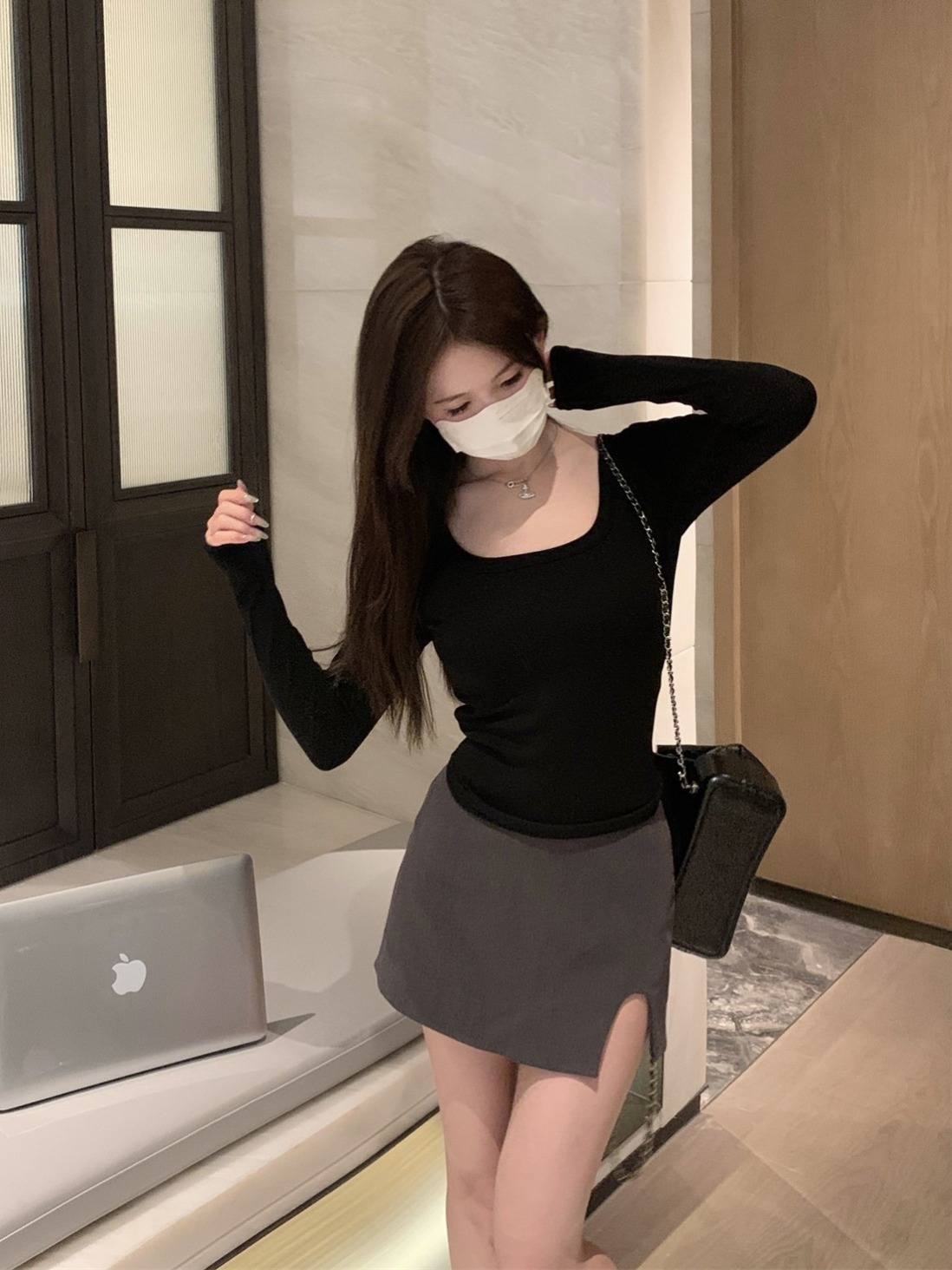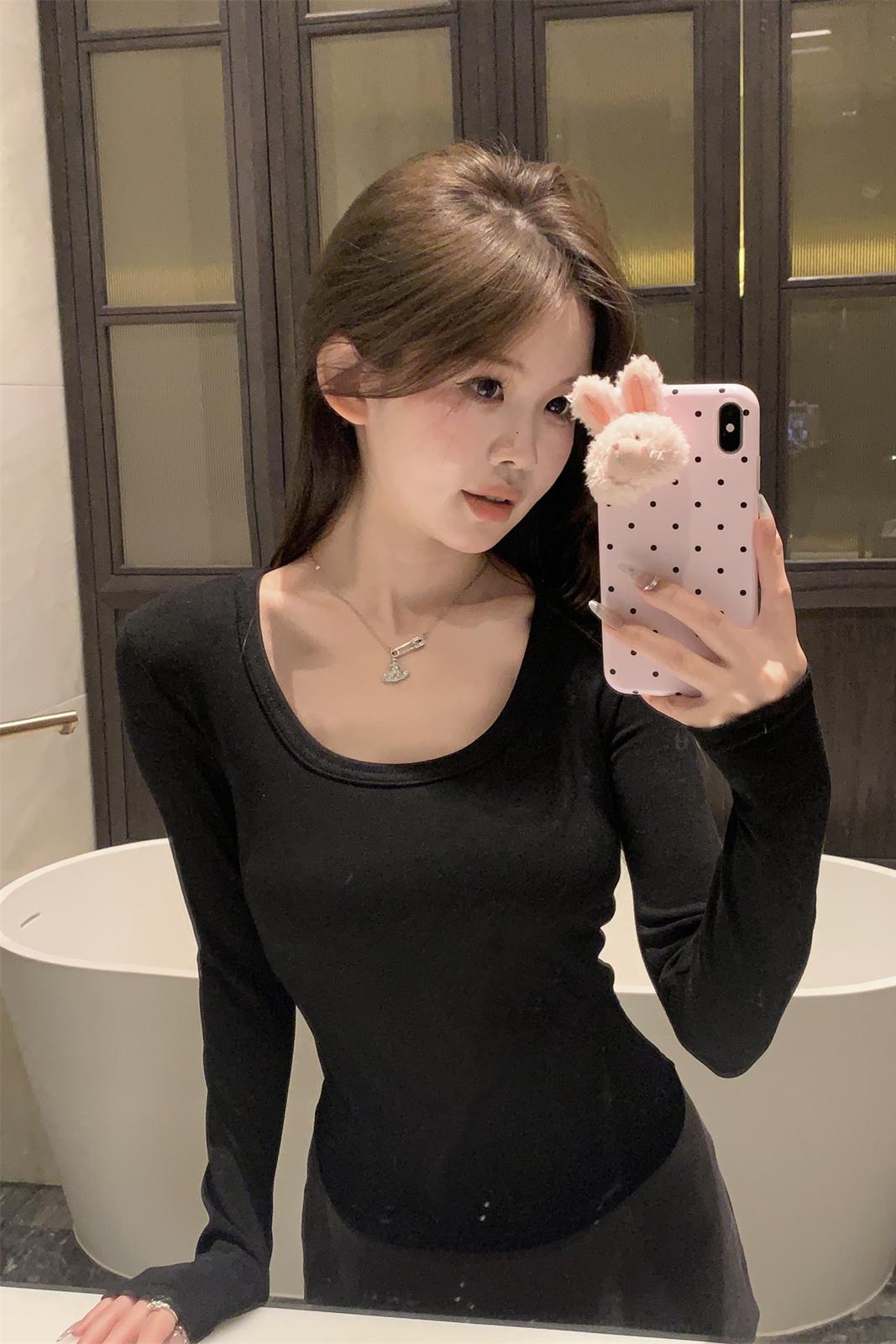 실제 사진 이른 봄 새로운 슬림 대조적 인 색상 가짜 2 피스 디자인 순수면 긴팔 티셔츠 여자 탑
