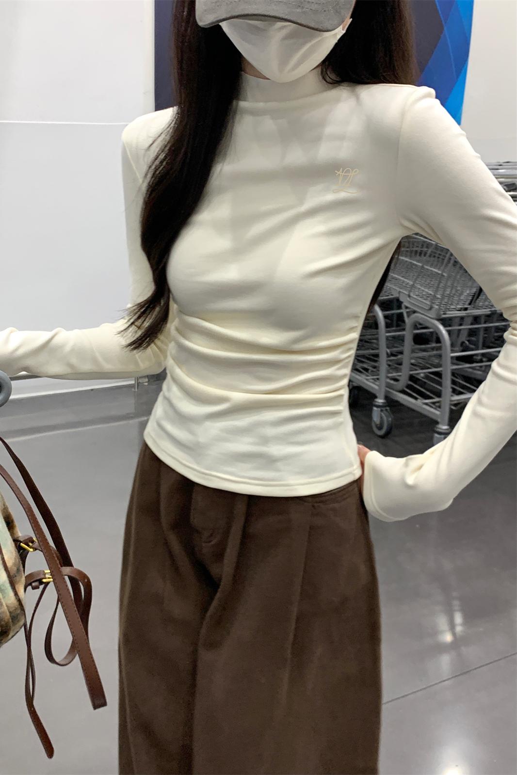 실제 사진 가을 및 겨울 한국 스타일 슬림 정사각형 칼라 내부 착용 대조 색상을위한 디자인을 여성을위한 니트베이스 셔츠로 만들기