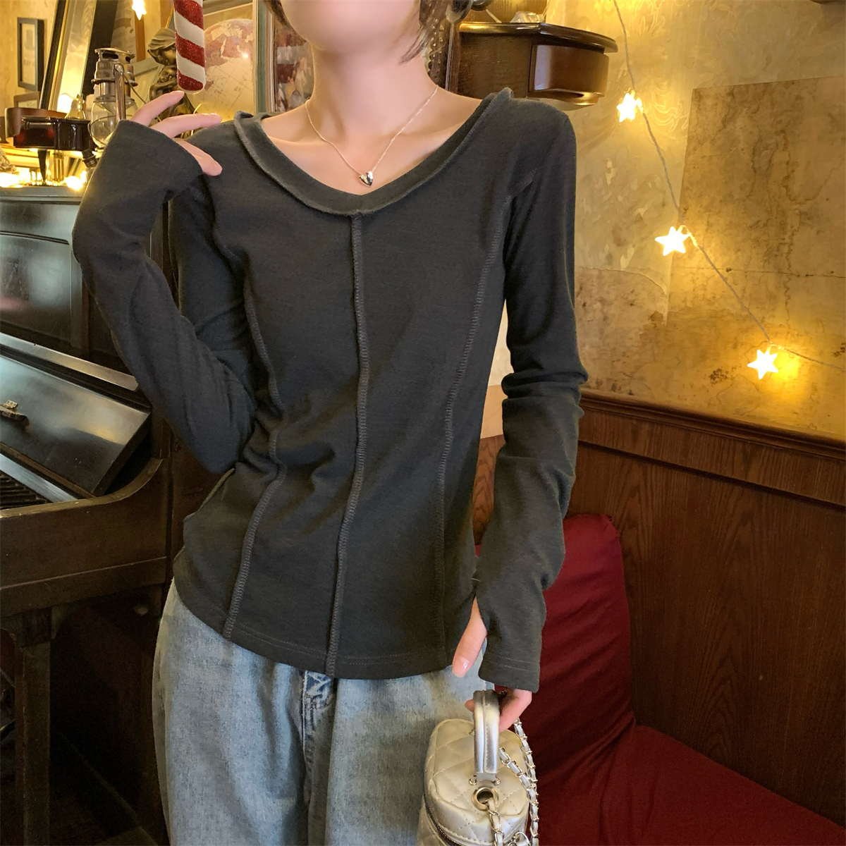 가을 겨울 슬림하고 다재다능한 버전의 실제 의 벨벳 열 내부 티셔츠베이스 탑