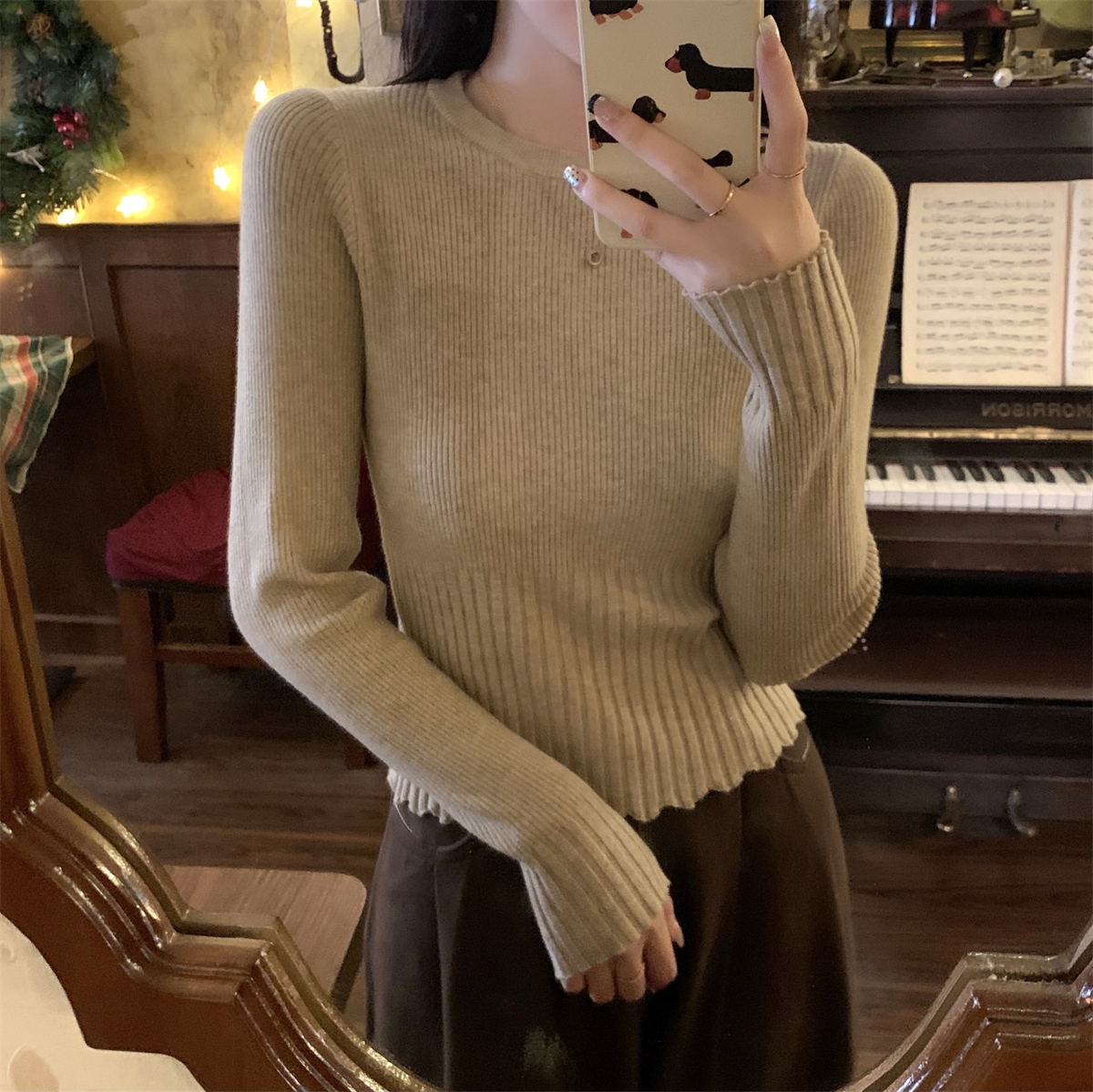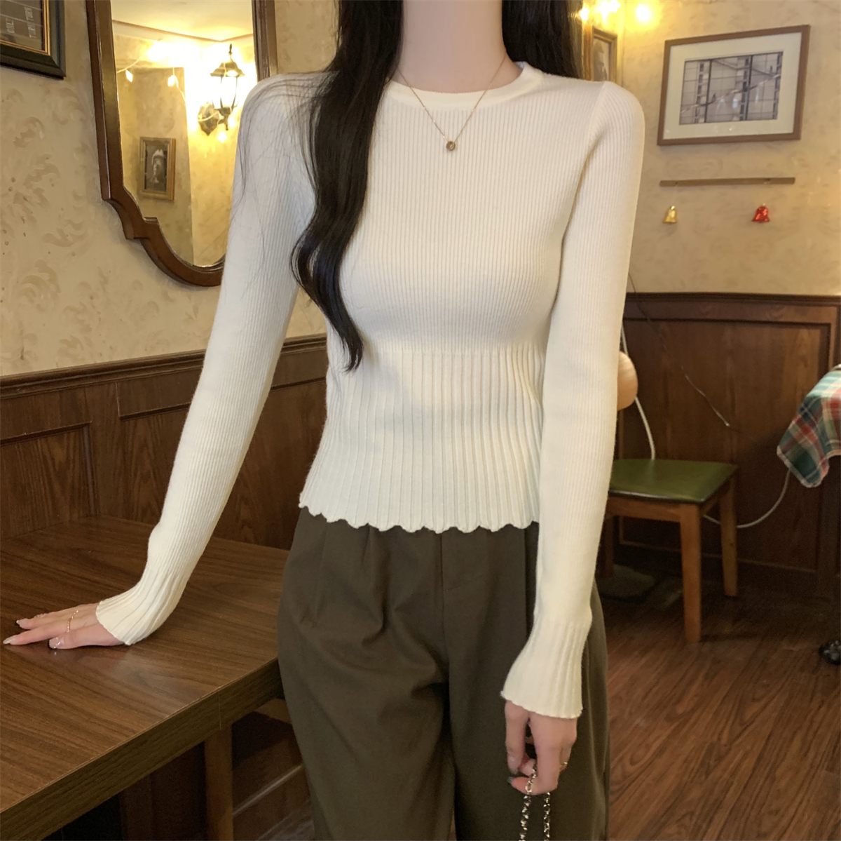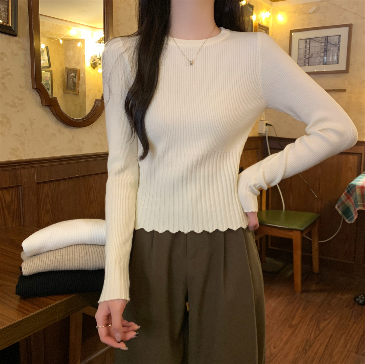 실제 사진 가을 겨울 스타일 슬림 제곱 목 기질 단색 내부와 앤디 벨벳 니트베이스 스웨터