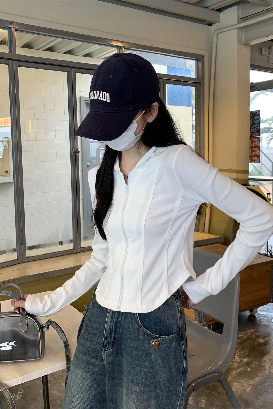 실제 사진 봄 슬림 v- 넥 아메리칸 편지 인쇄 뜨거운 소녀 슬림면 긴팔 티셔츠 탑