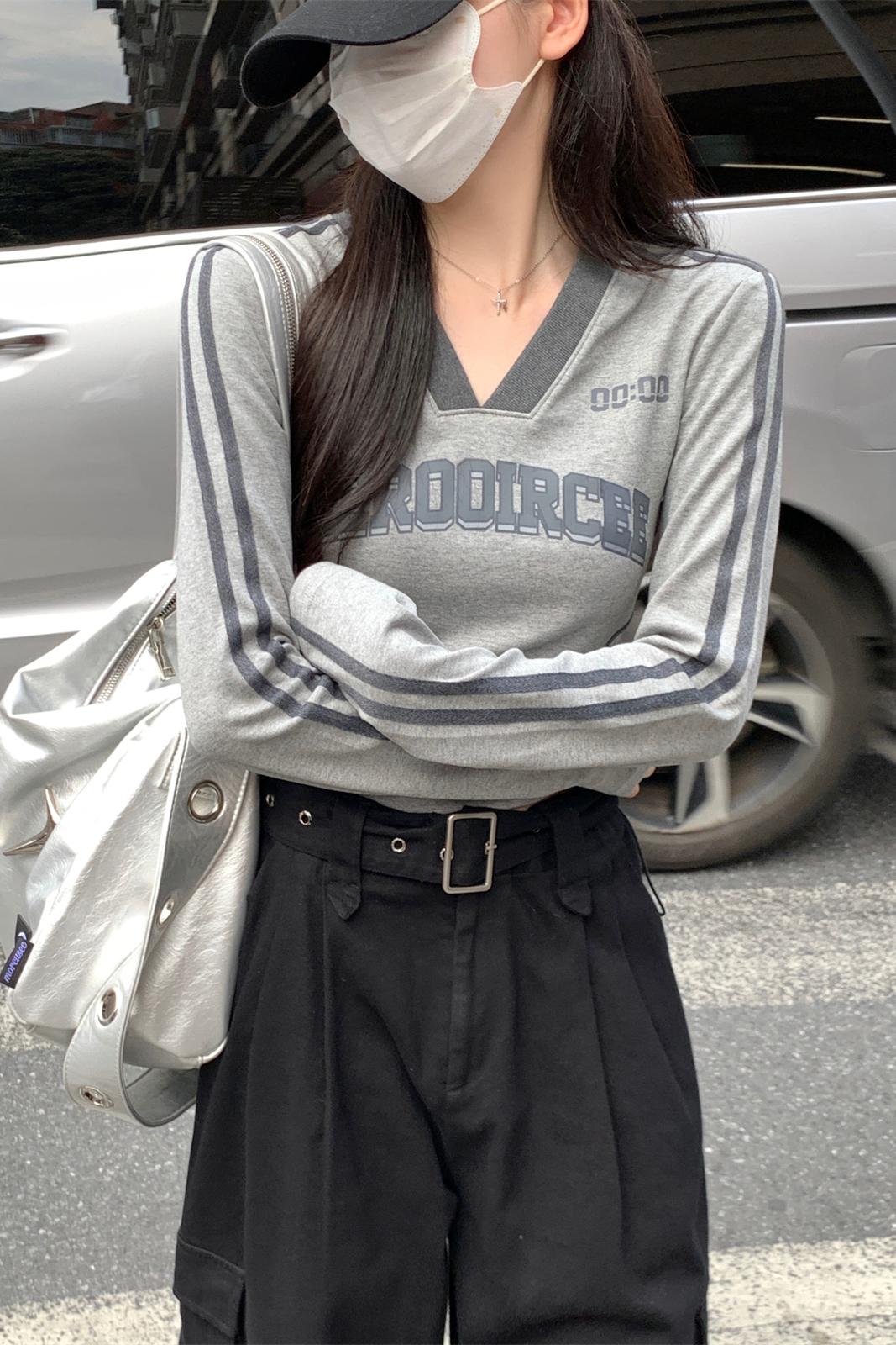 실제 사진 이른 봄 의 반 높이의 고장 파손 슬리브 디자인 순수면 슬림 핏 티셔츠 여자 탑