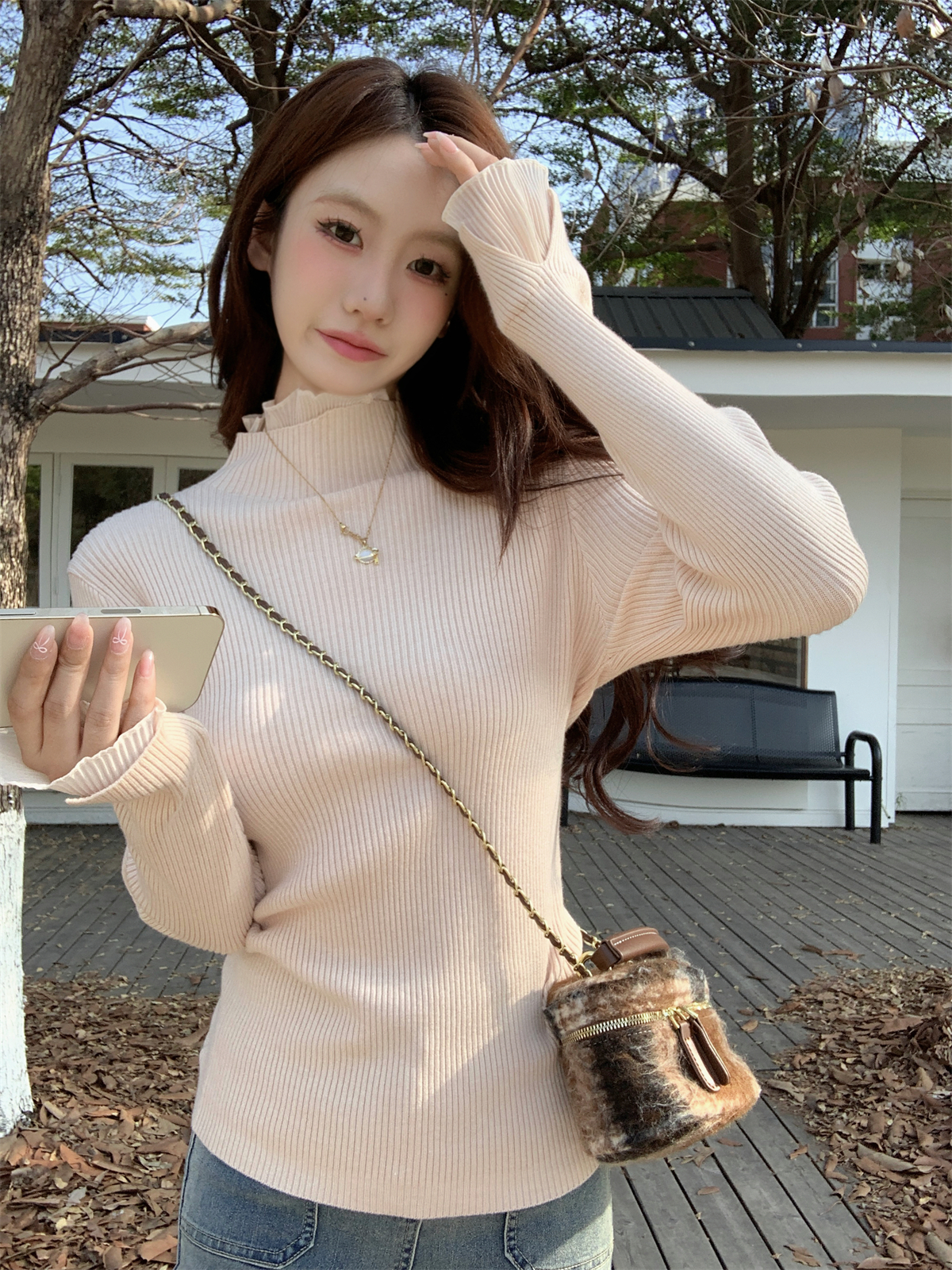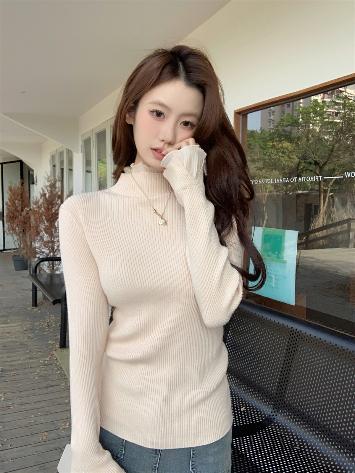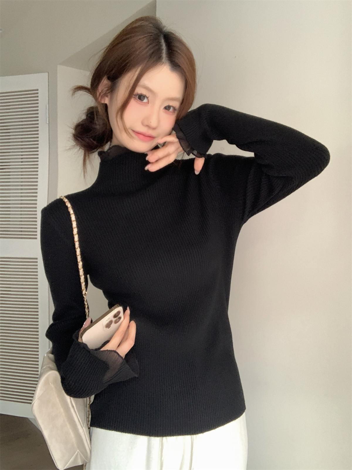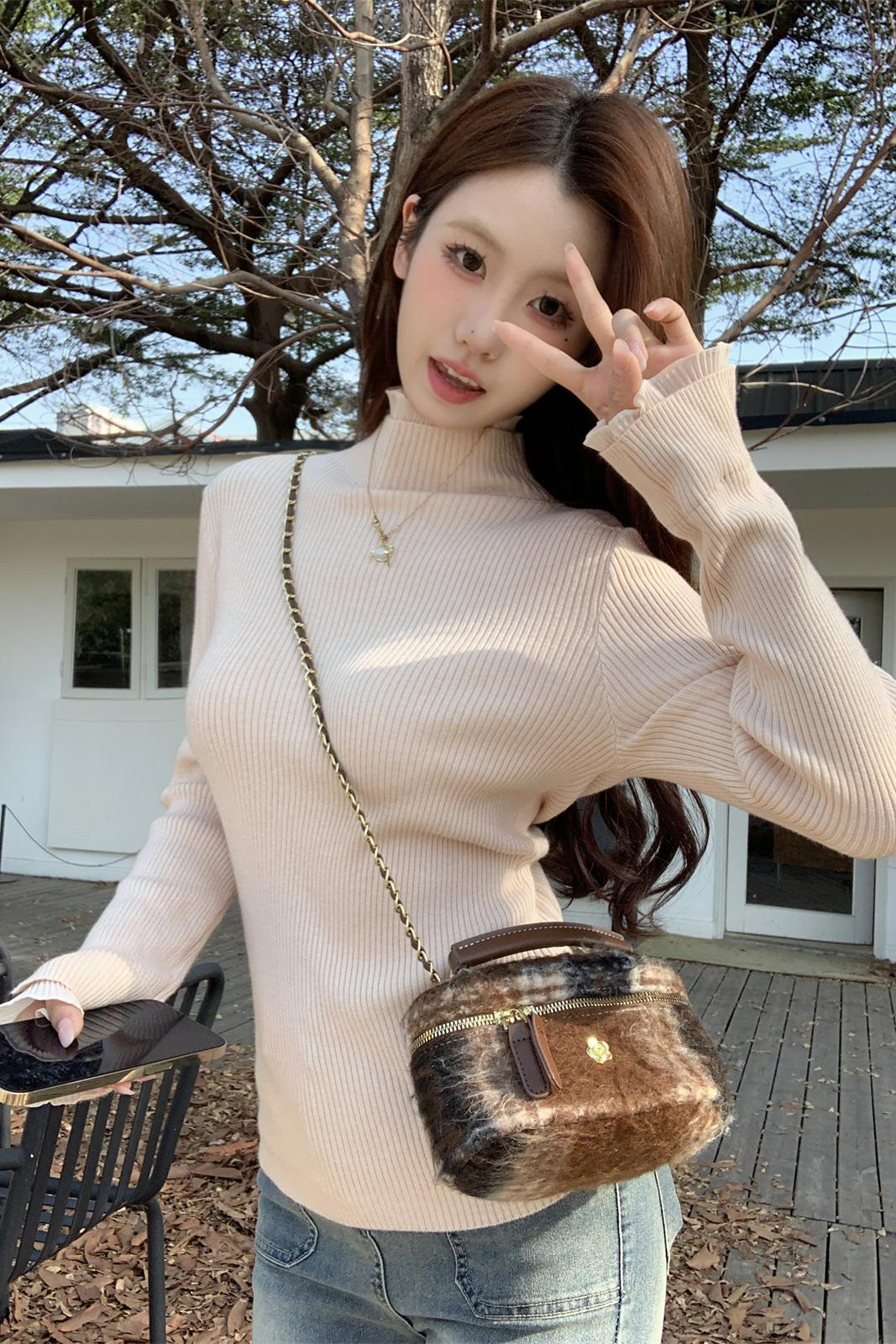 실제 사진 라운드 넥 Maillard의 대조 컬러 가짜 2 피스 앤디 벨벳 내부 니트베이스 스웨터