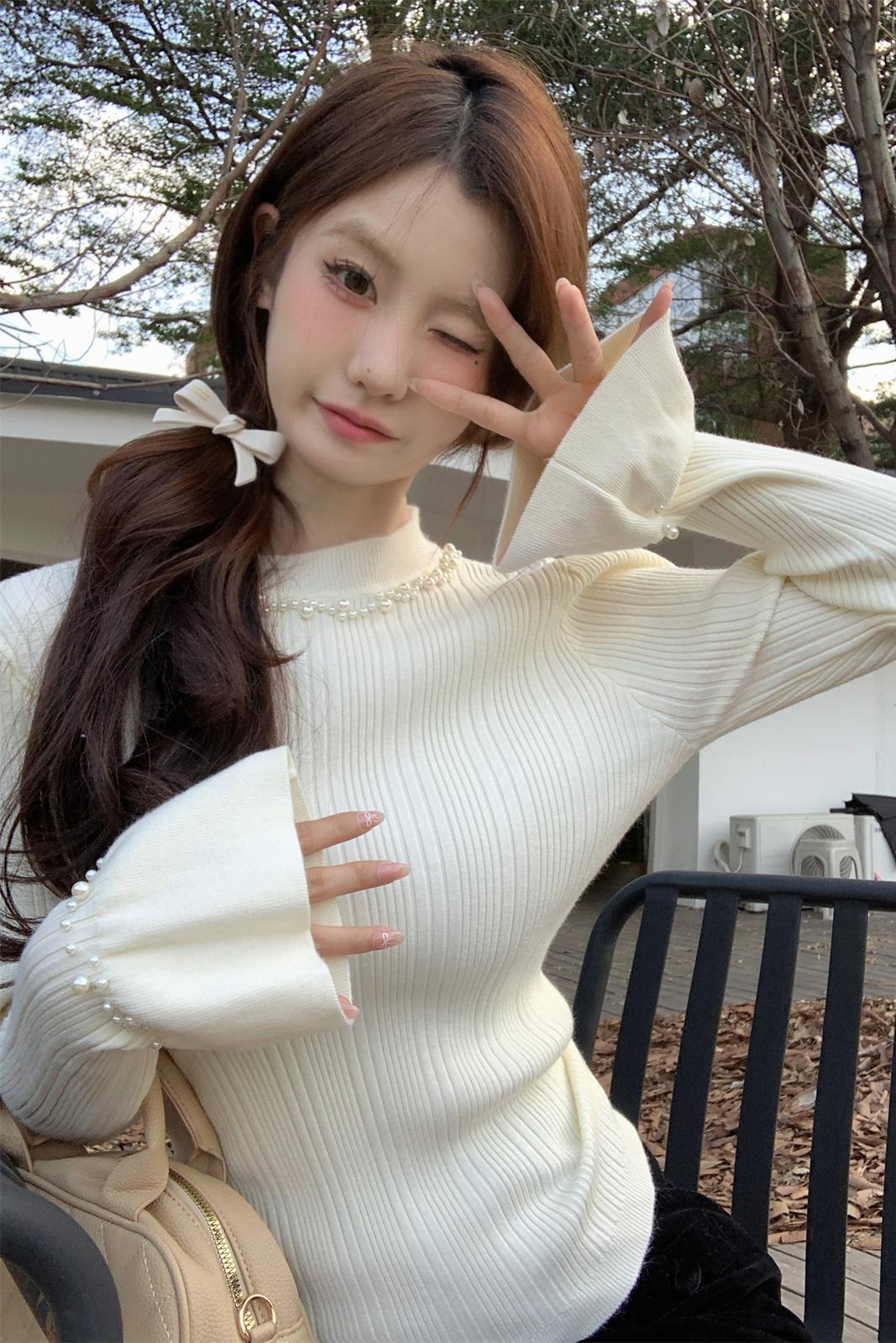 실제 사진 가을 겨울 한국 스타일 슬림 한 단색 버튼 디자인 및 기질 내부 니트베이스 스웨터
