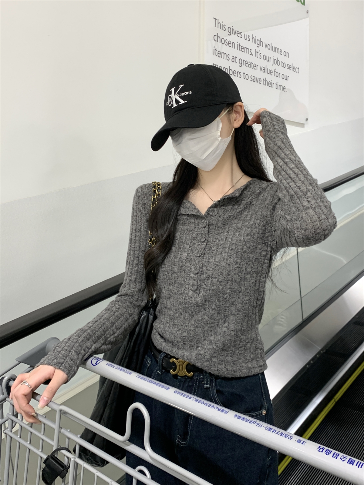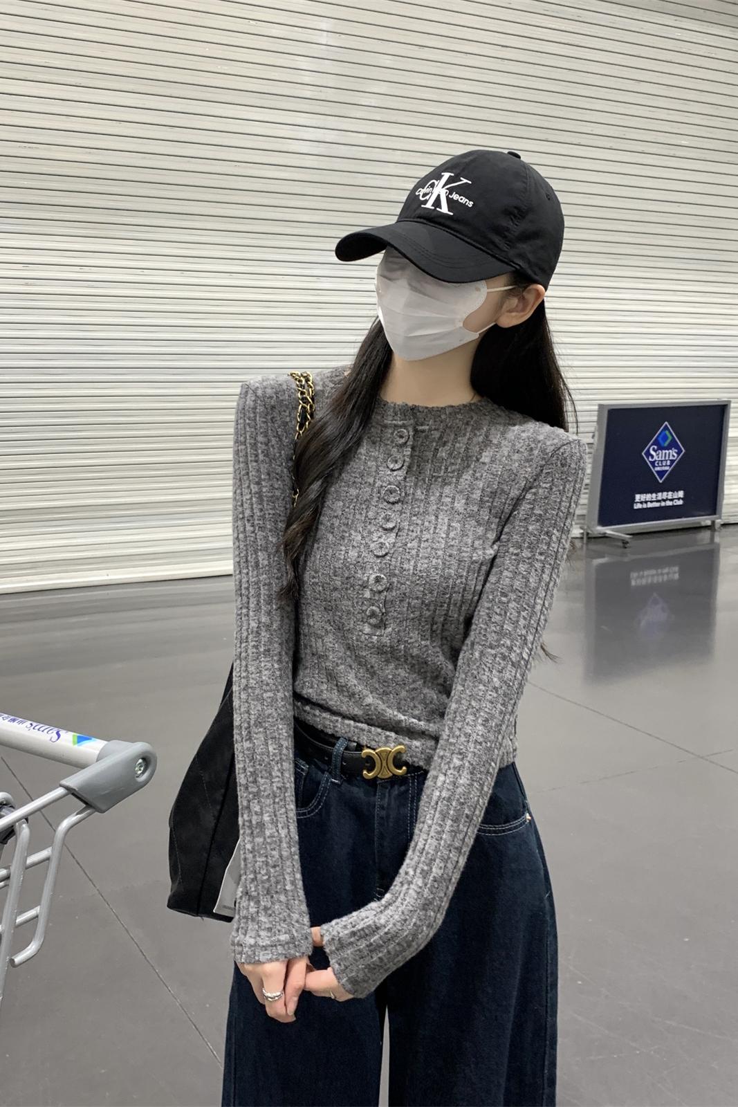 벨벳 두꺼운 기질로 한국 스타일의 슬림 한 높은 목. 내부 따뜻한 바닥 여성 티셔츠