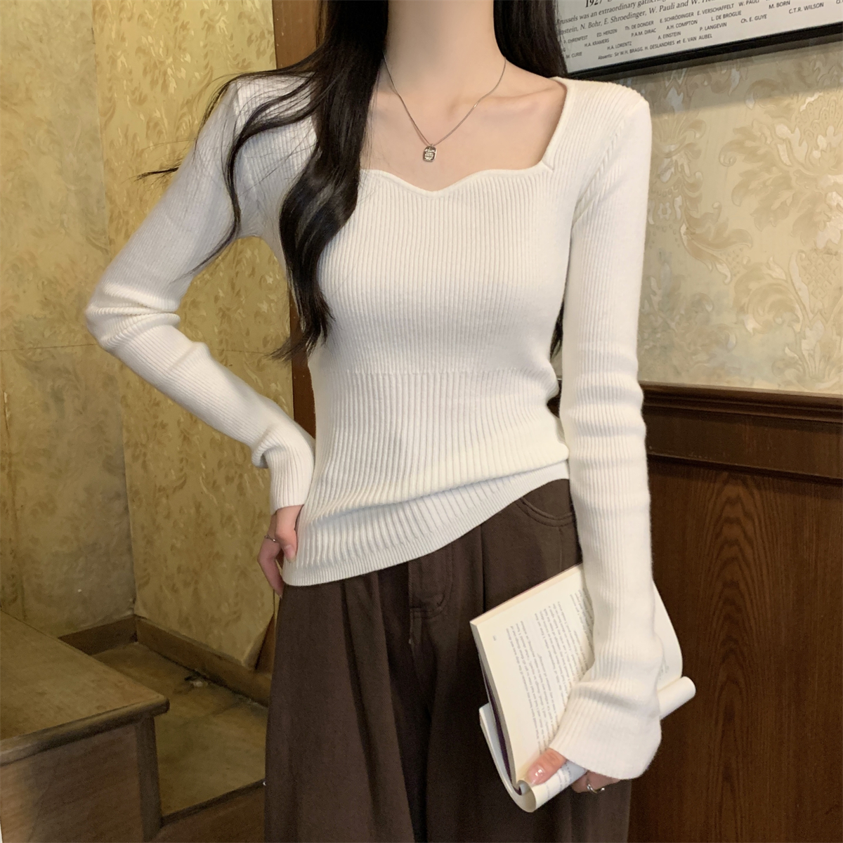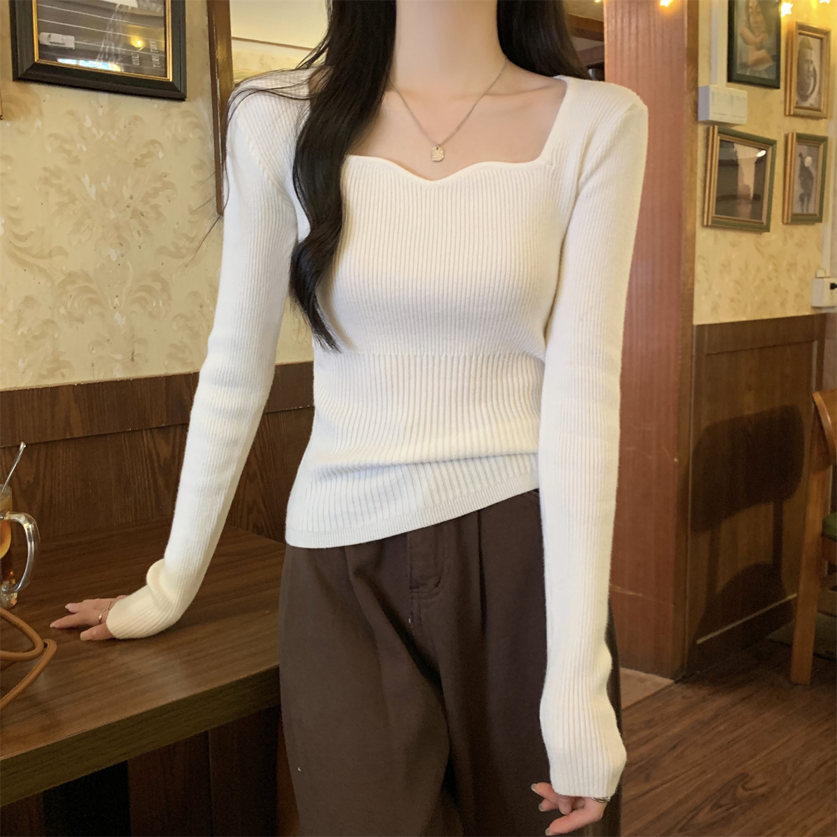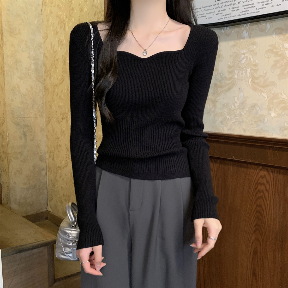 실제 사진 가을 겨울 한국 스타일 슬림 기질 정장 칼라 슬림 디자인 내부 니트베이스 스웨터