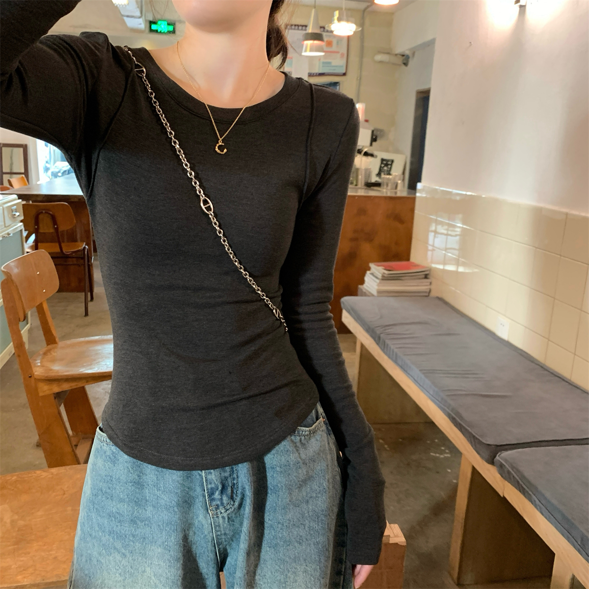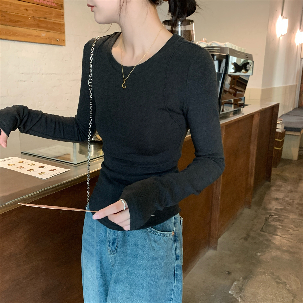 실제 발사 및 가을 및 겨울 의 둥근 목 슬림 물고기 뼈가 날씬해 보이고 앤디 벨벳 니트베이스 스웨터