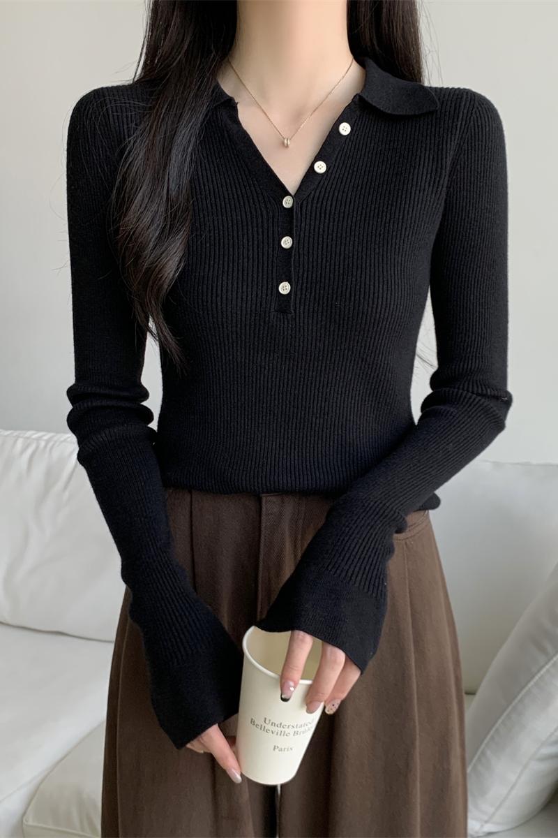 가을 및 겨울 한국어 버전의 하이넥 목재 귀걸이 디자인 단색 독일 벨벳 열 내부 티셔츠베이스 탑