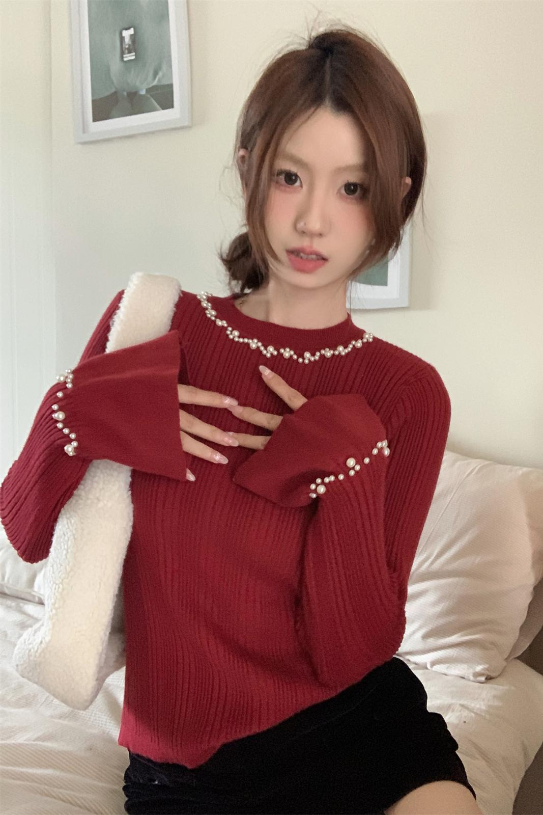 실제 사진 낮은 둥근 목이있는 대조 색상 가짜 2 피스 앤디 벨벳 내면 니트베이스 스웨터