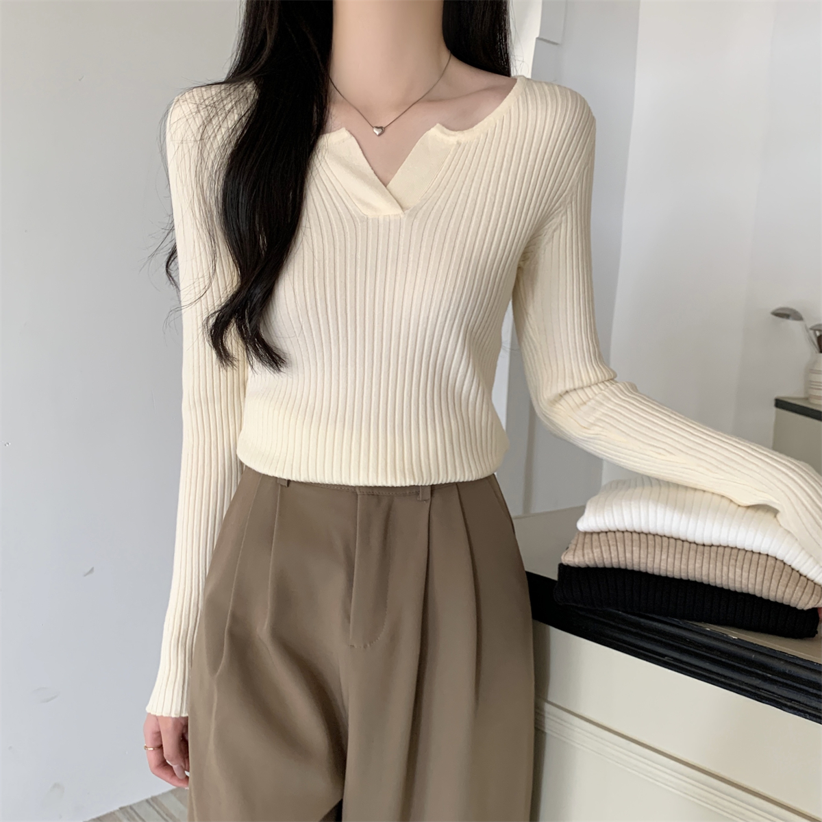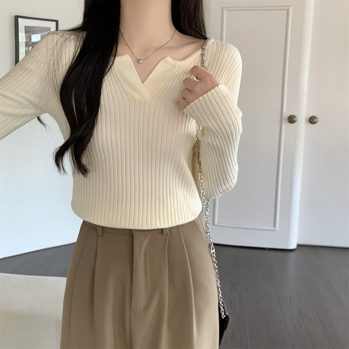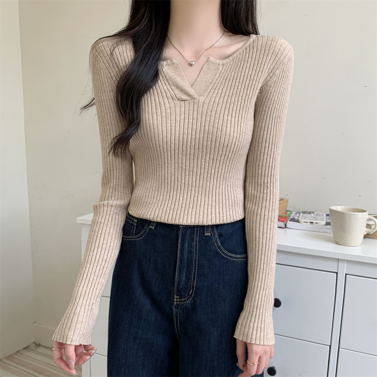 슬림 V- 넥 레이스 스 플라이 싱 및 독특한 디자인의 가을 및 겨울 버전 Andy Velvet Knitted Sweater