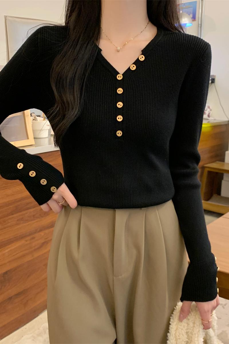 가을 및 겨울 슬림 v- 넥 기질 다목적 단색 내부 순수면 티셔츠베이스 탑