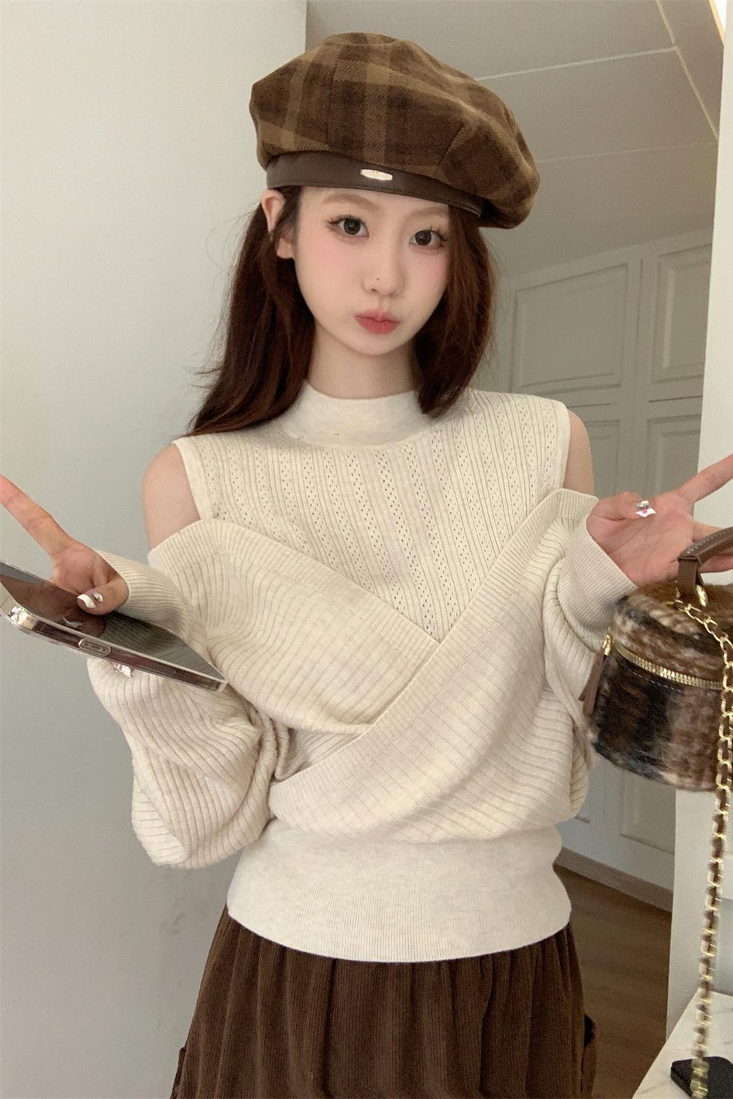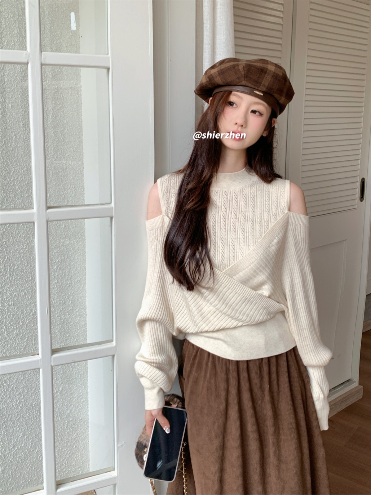 실제 사진 가을 겨울 한국 스타일 폴로 칼라 슬림하고 다재다능한 단색 여성용 니트베이스 스웨터