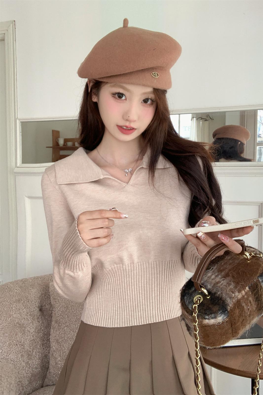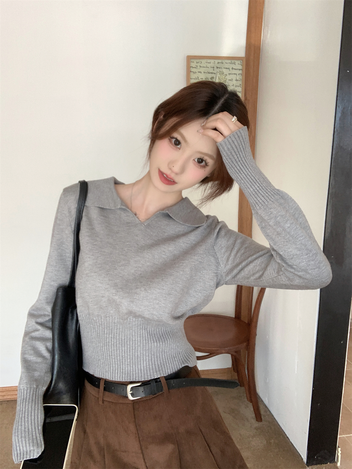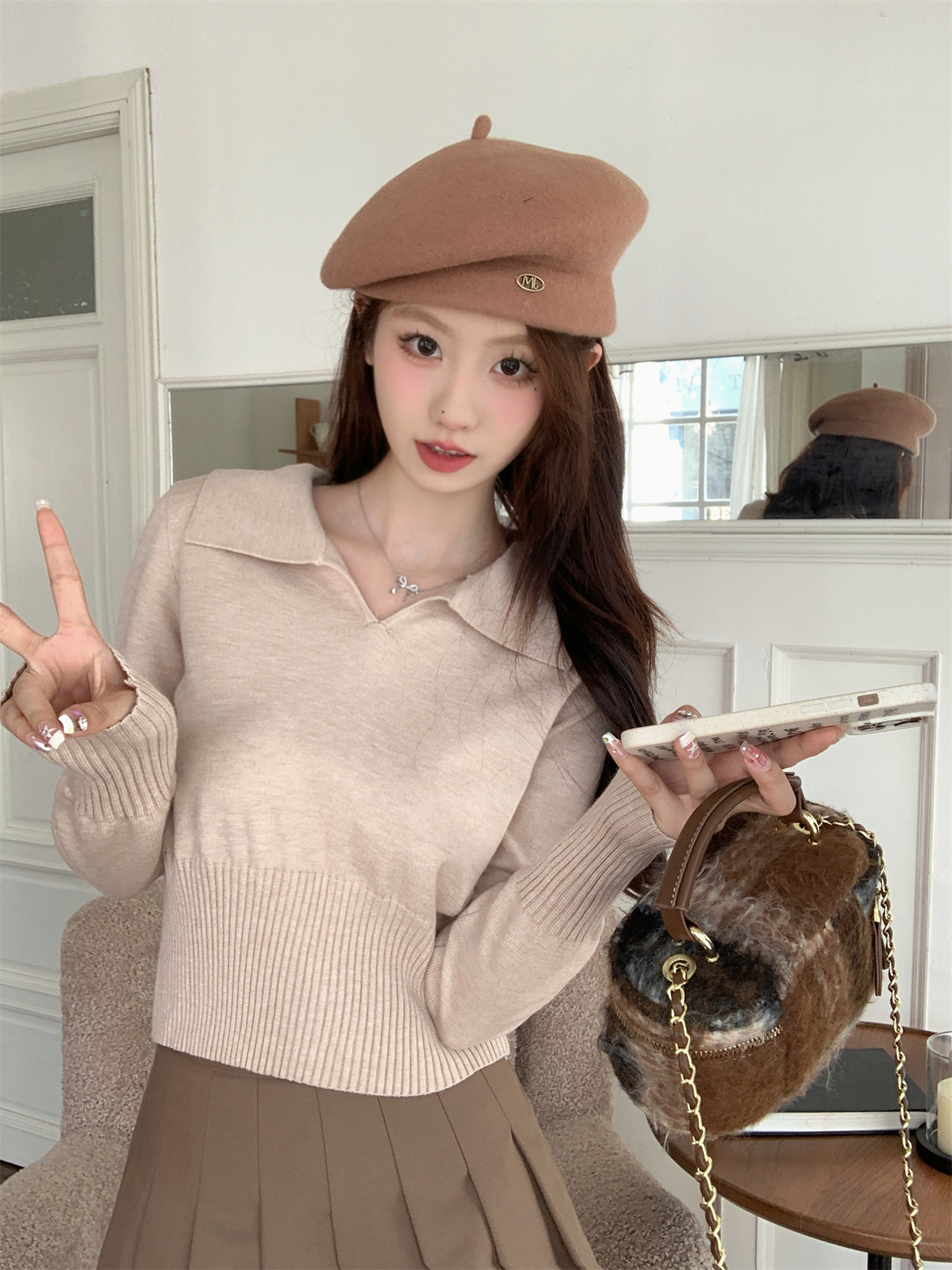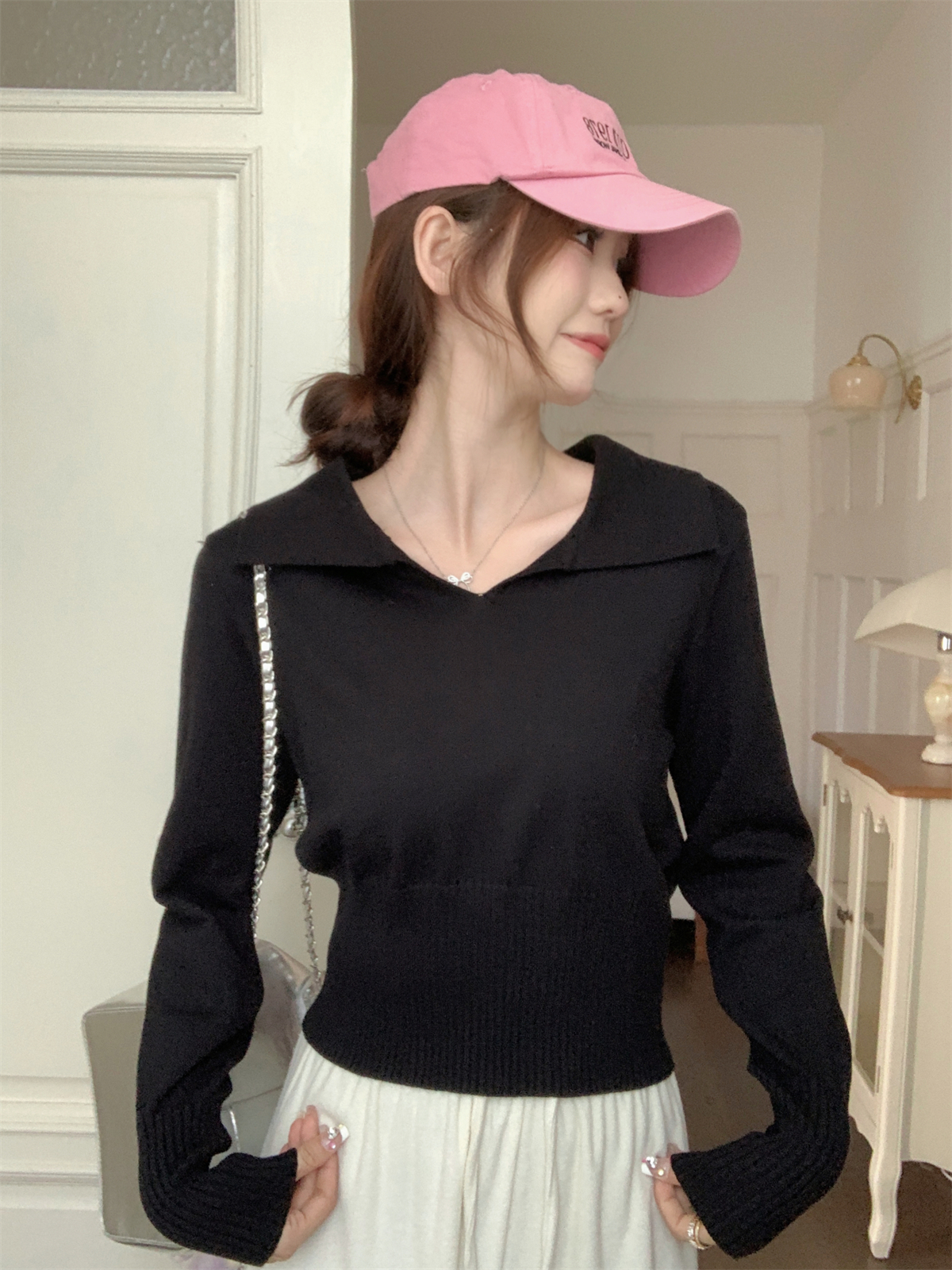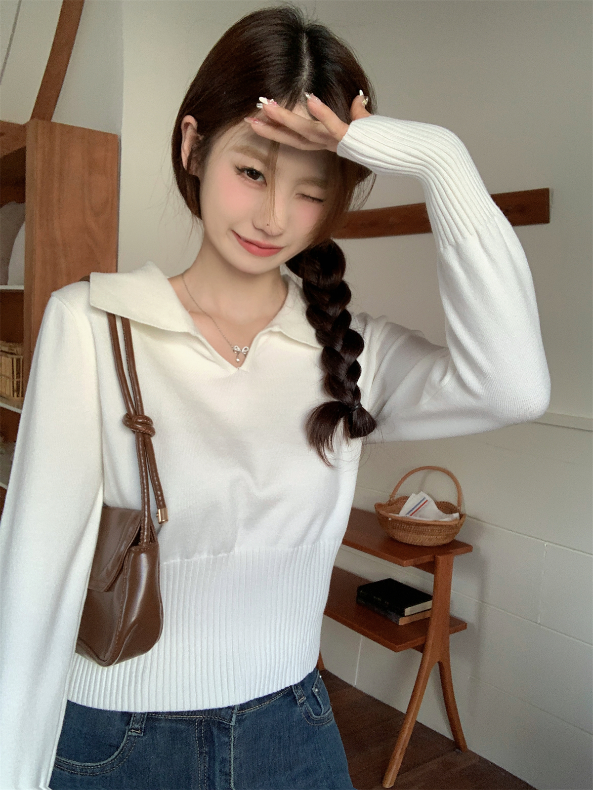 가을 및 겨울 한국 스타일 대조 컬러 폴로 칼라 풀러 버튼 디자인 니트베이스 여성 스웨터