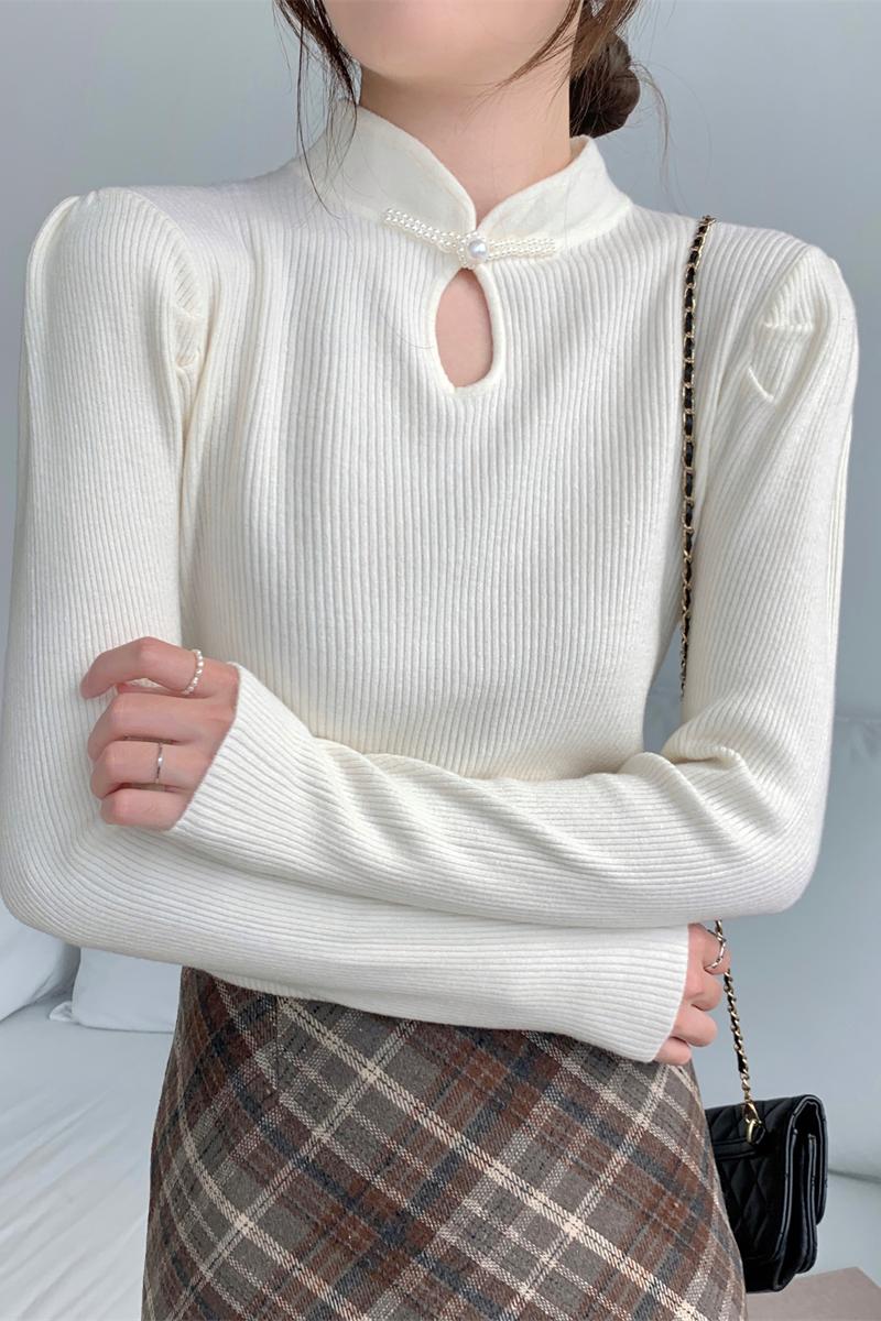 슬림 u-넥 롤 에지 단색의 다목적 순수면 내부 긴팔 티셔츠 여자 탑의 한국어 버전
