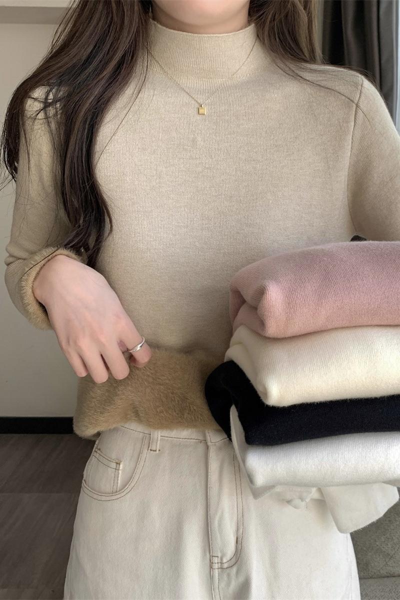한국어 버전의 어깨 둥근 목 단색 주름 슬리밍 디자인 순수면 내부 티셔츠 여자 탑