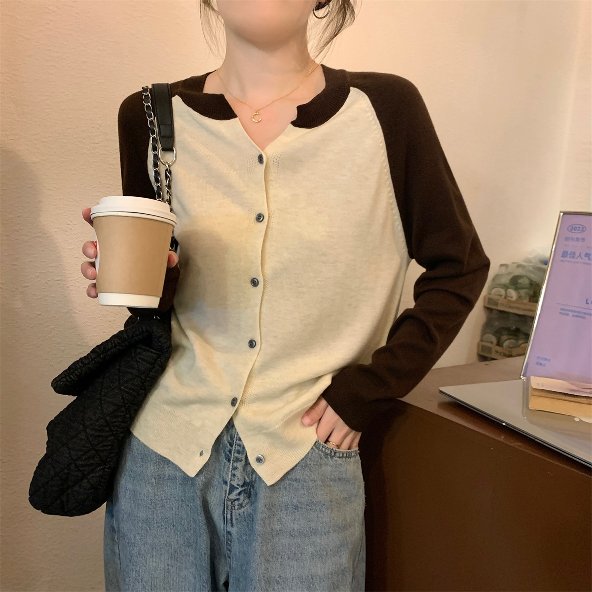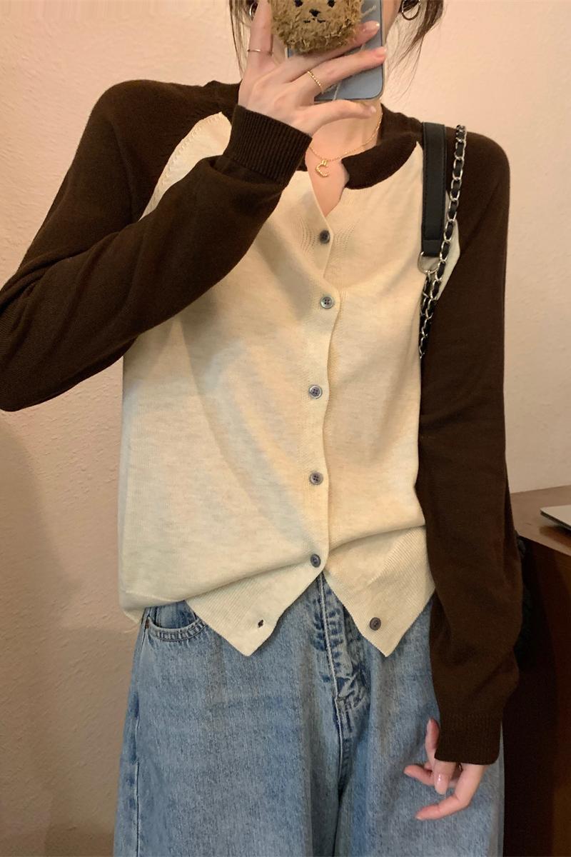 가을 및 겨울 한국 스타일 슬림 한 둥근 목 버튼 주름 디자인 순수면 긴팔 티셔츠 여자 탑