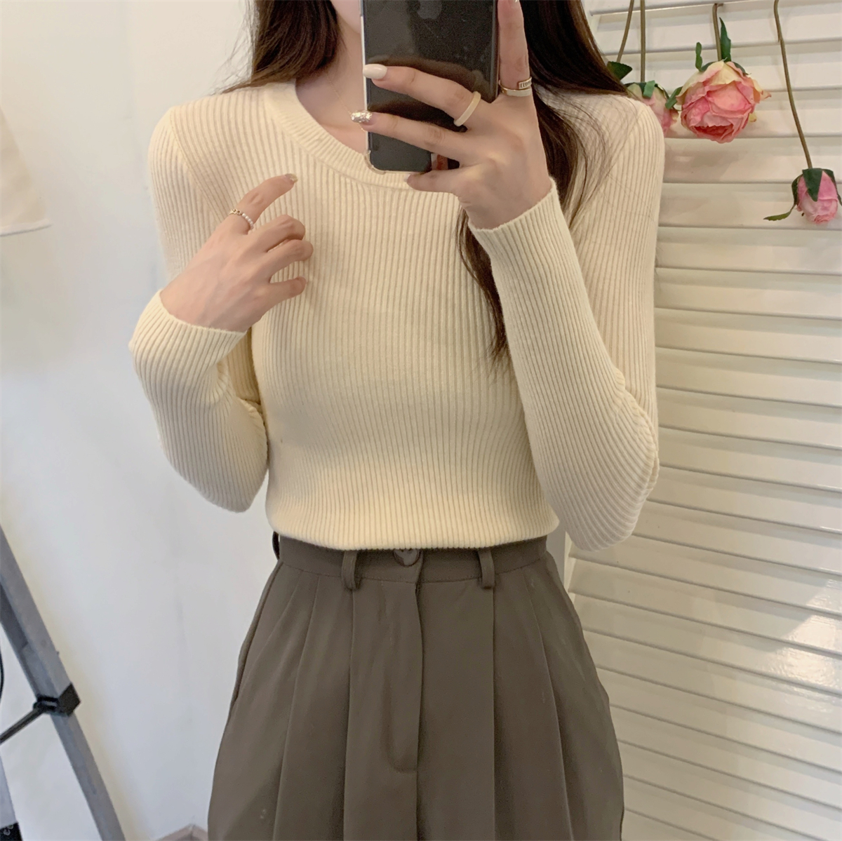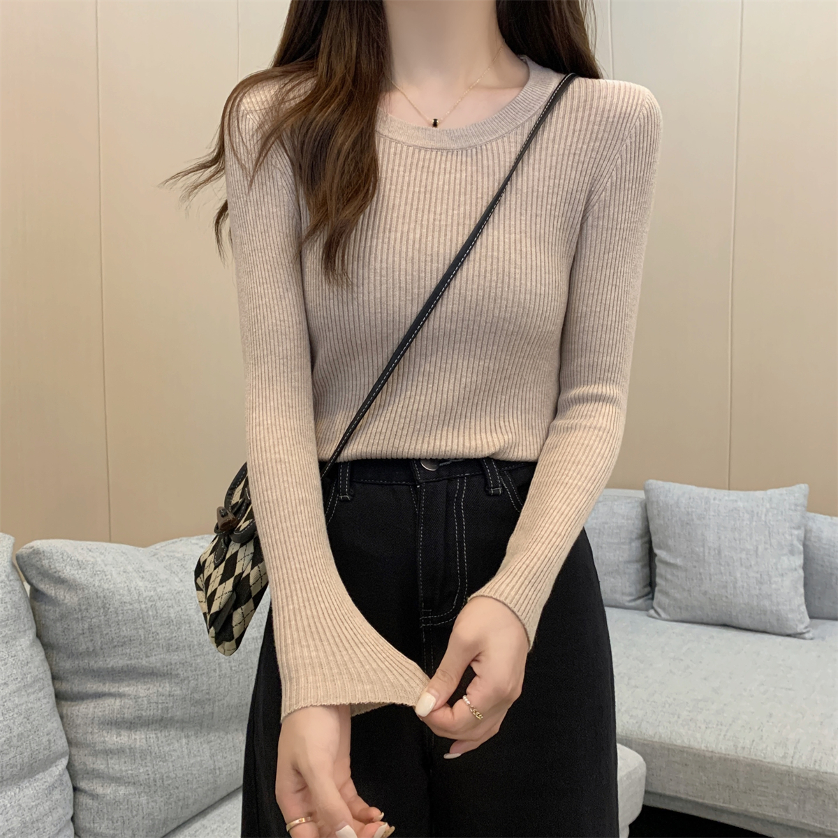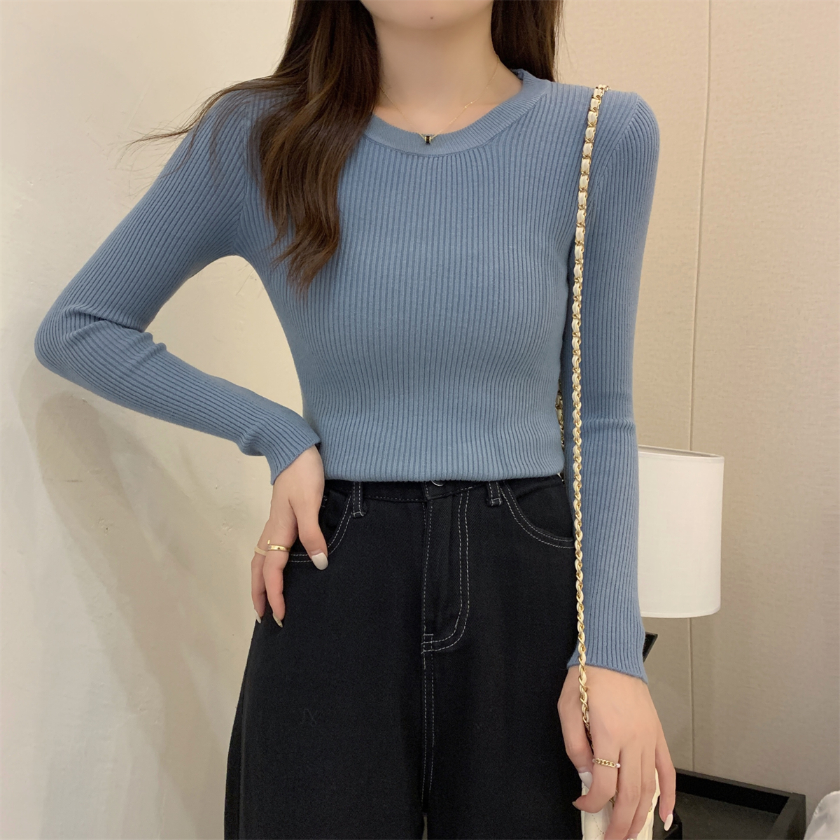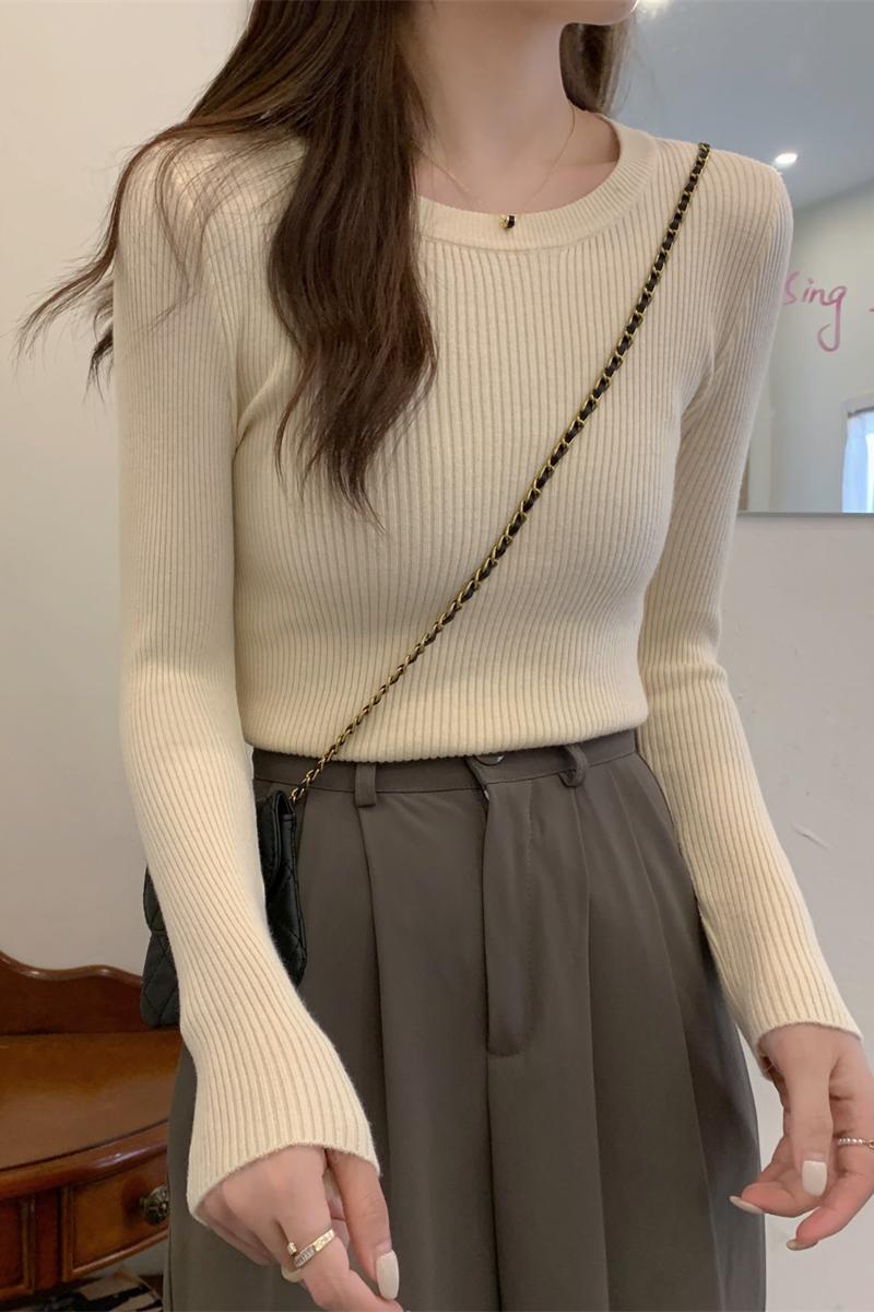 가을 겨울의 단색 주목받은 기질 반 높이의 고리 내부 슬림 니트베이스 셔츠의 한국어 버전
