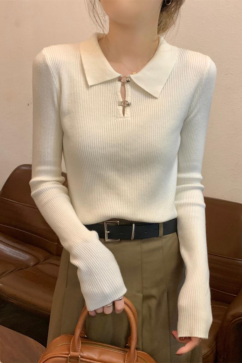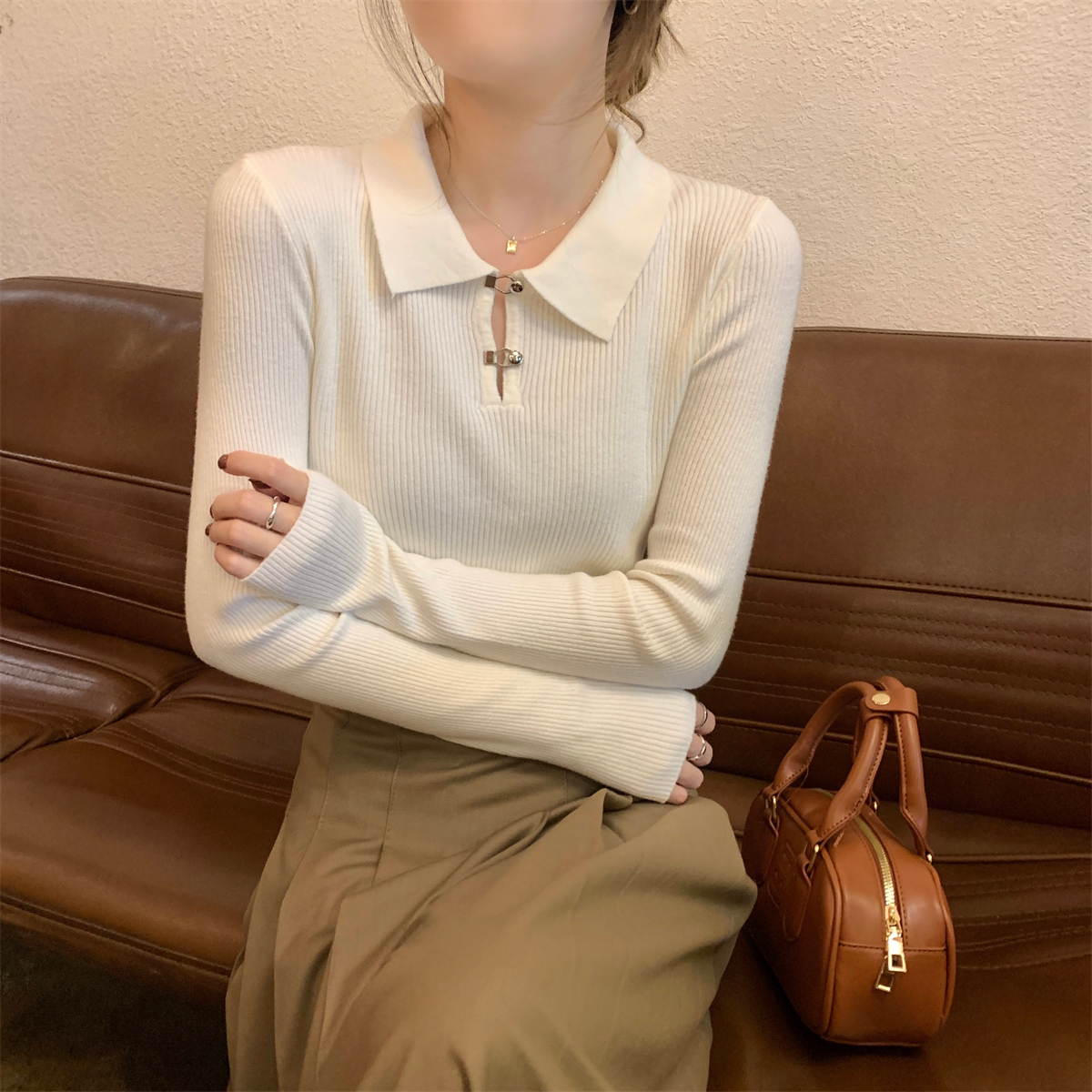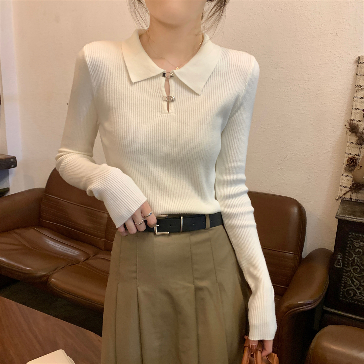 가을 및 겨울 한국의 슬림 라펠 라펠 라펠 라펠 레플렉션 디자인 풀오버 내부 니트베이스 셔츠