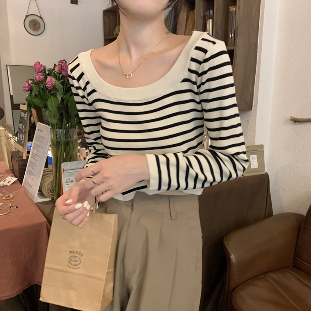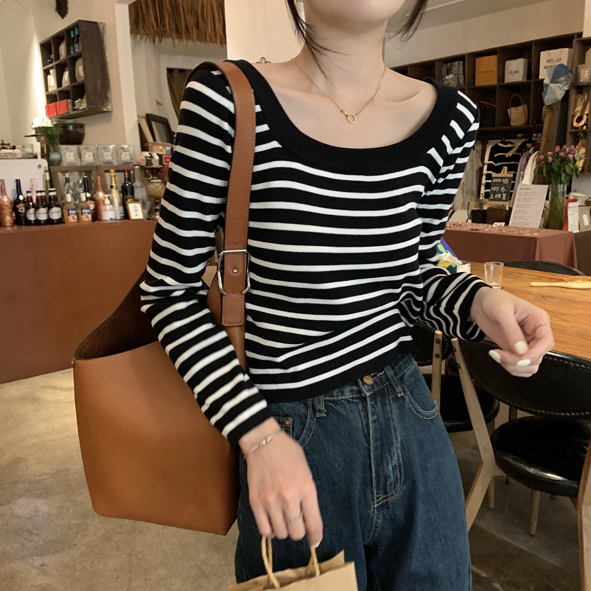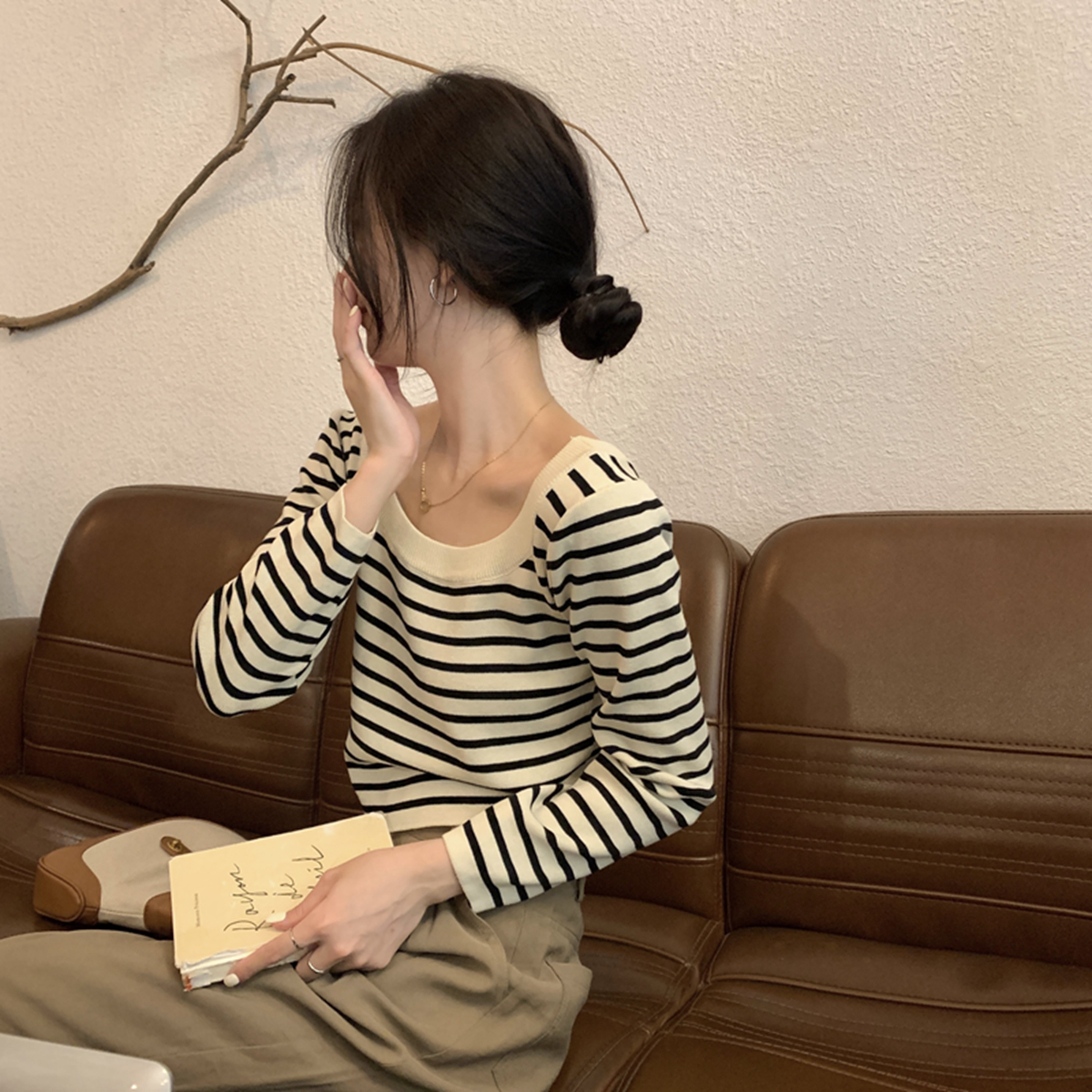 실제 사진 가을 겨울 한국 스타일 다목적 디자인 긴팔 내면 니트베이스 셔츠 여자 스웨터 탑