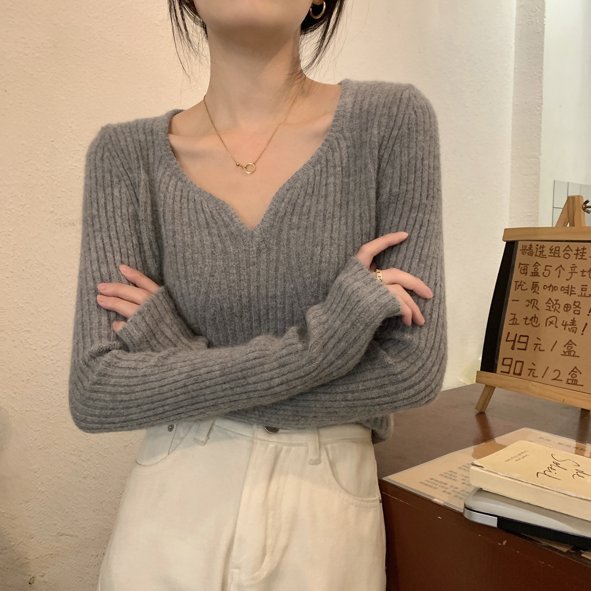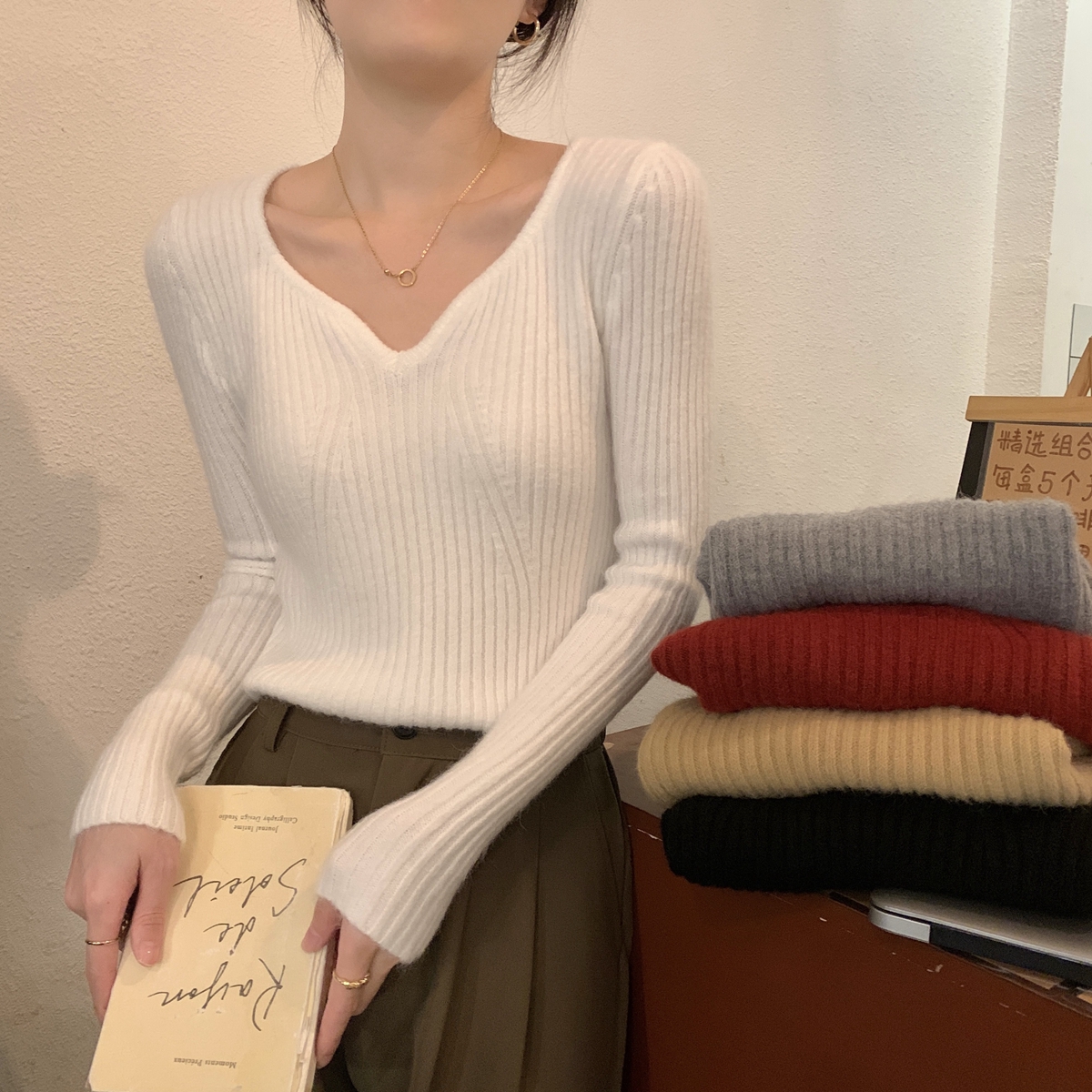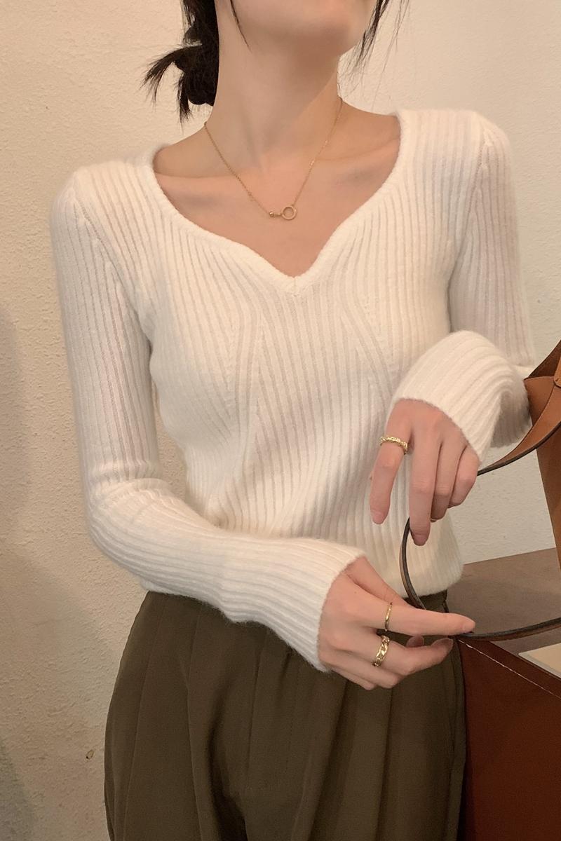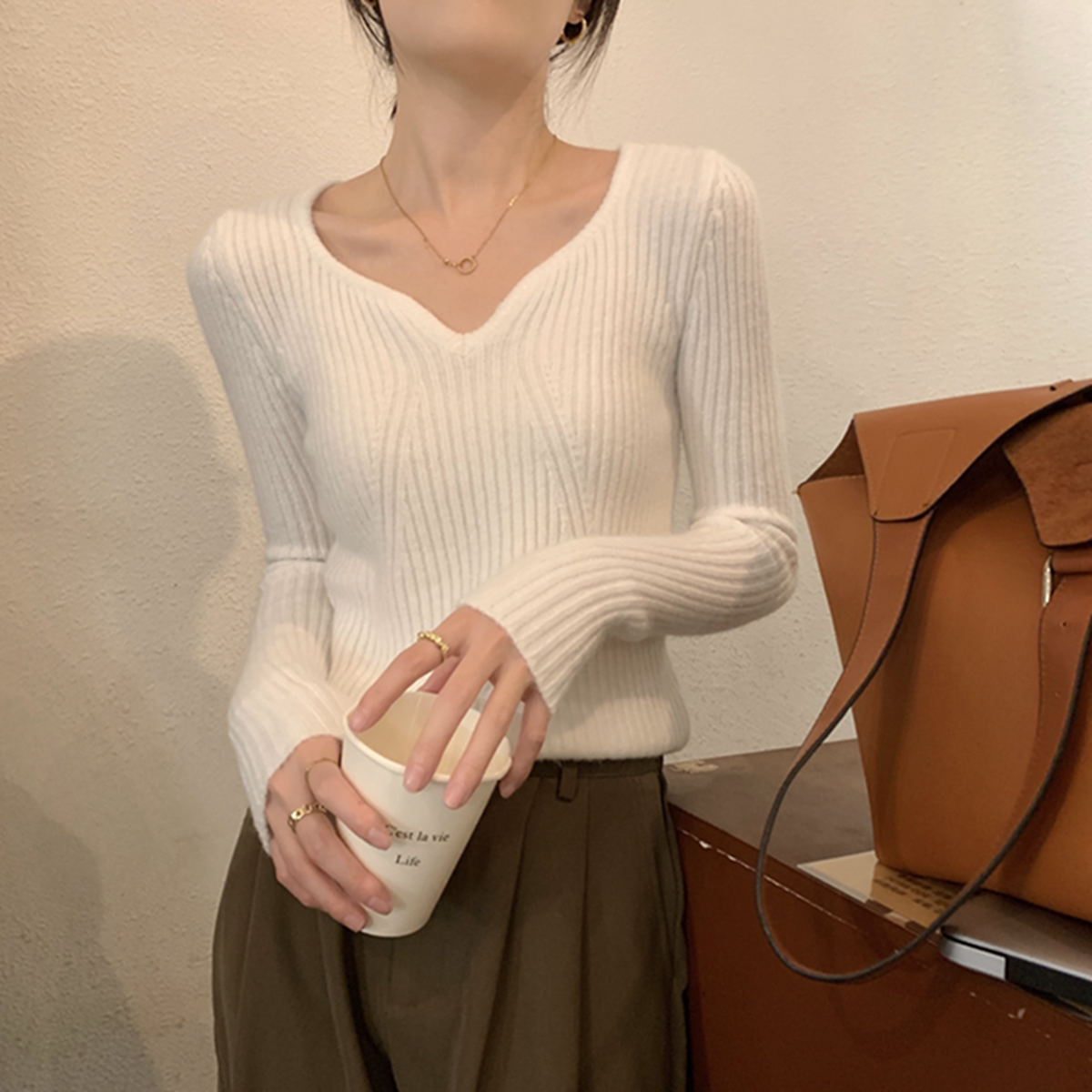 실제 가을 겨울 순수한 사각형 칼라 슬림 안내 내면 마모 디자인 니트베이스 셔츠