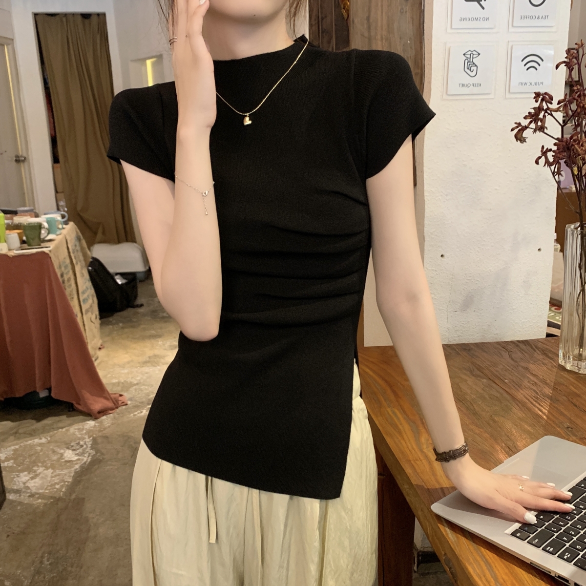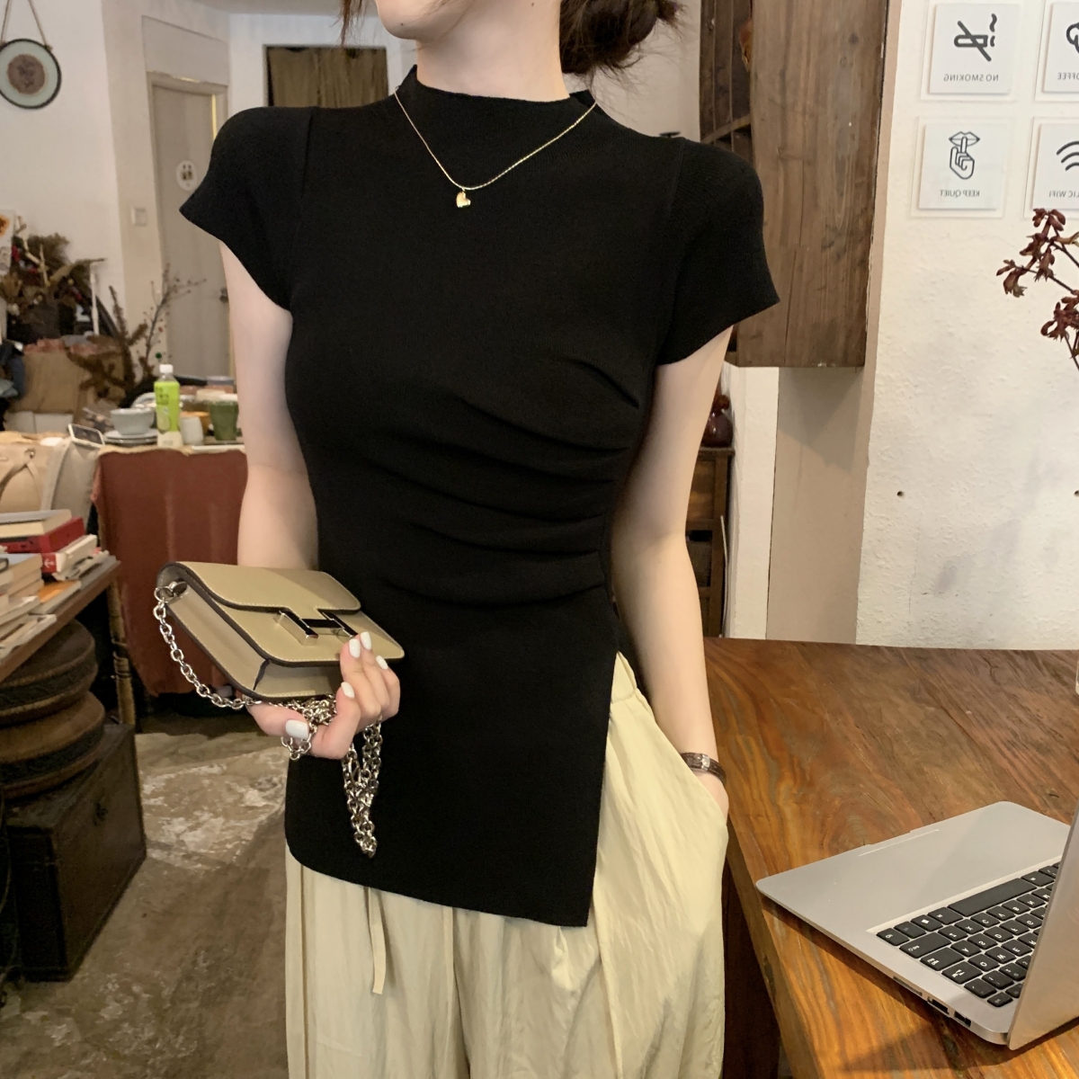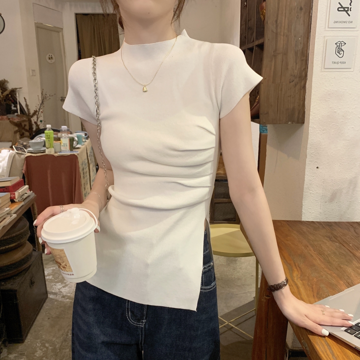 가을 가을 한국 스타일 폴로 칼라 6 양모 게으르고 다재다능한 단색 니트 긴팔 여성 탑