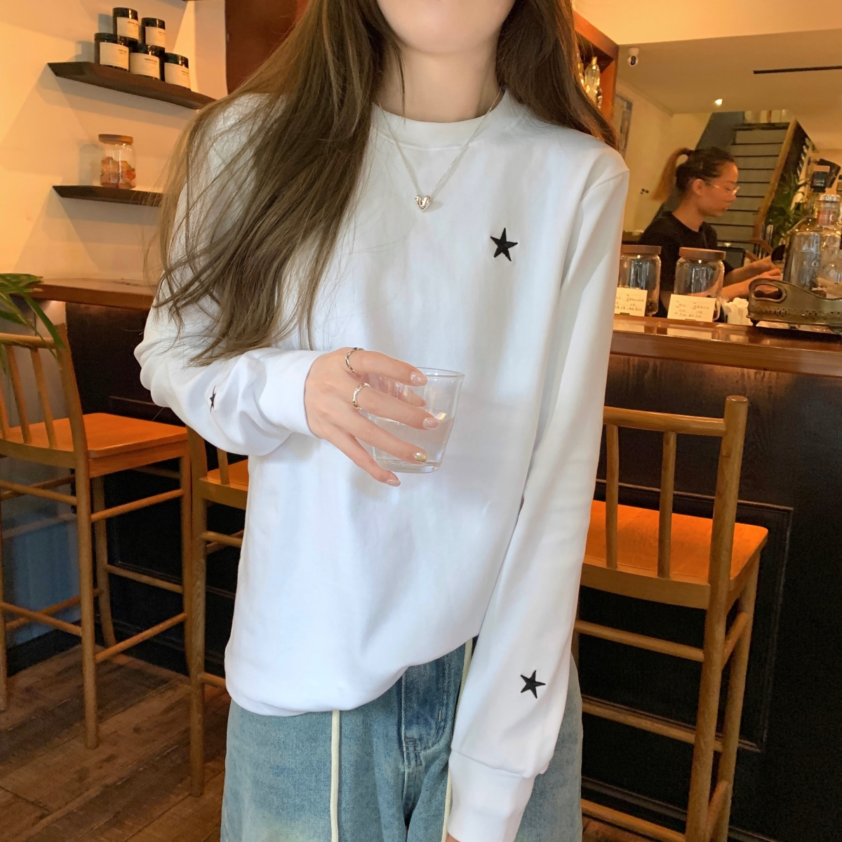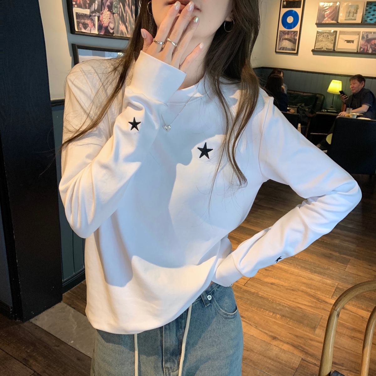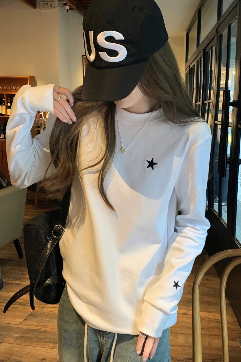 가을 가을 의 래그 어깨 대비 스타 디자인 순수면 내부 긴 소매 티셔츠 틈새 여성