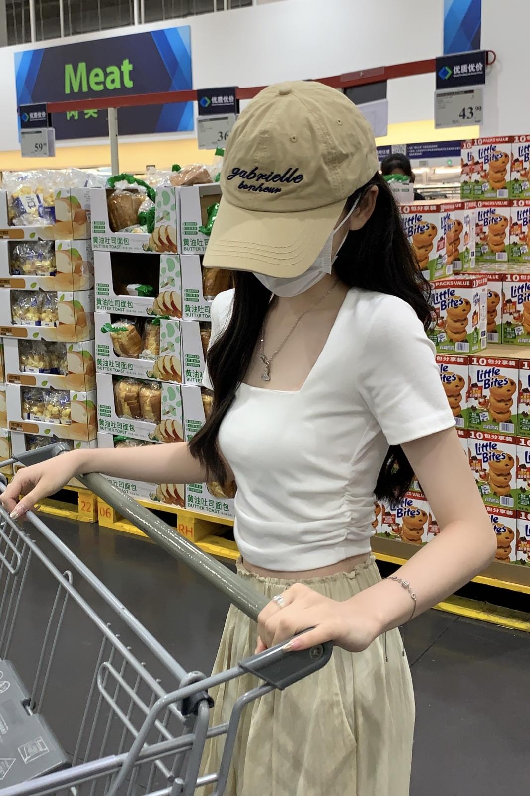 둥근 목 기질 슬림 디자인 백 중공 니트 짧은 슬리브 탑의 실제 사진 및 여름
