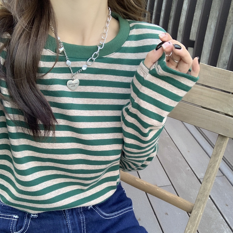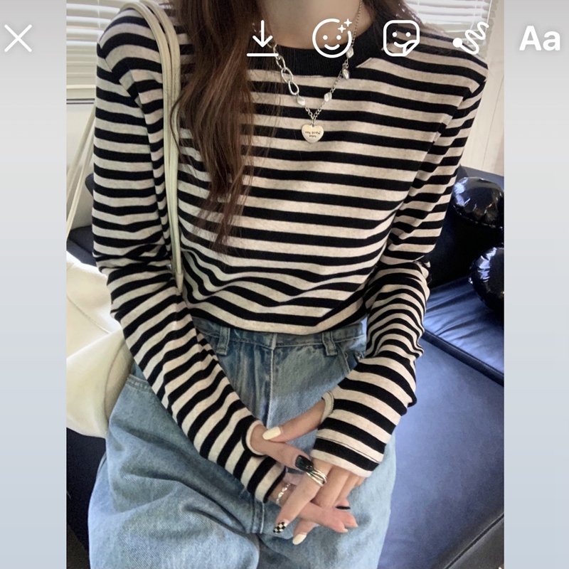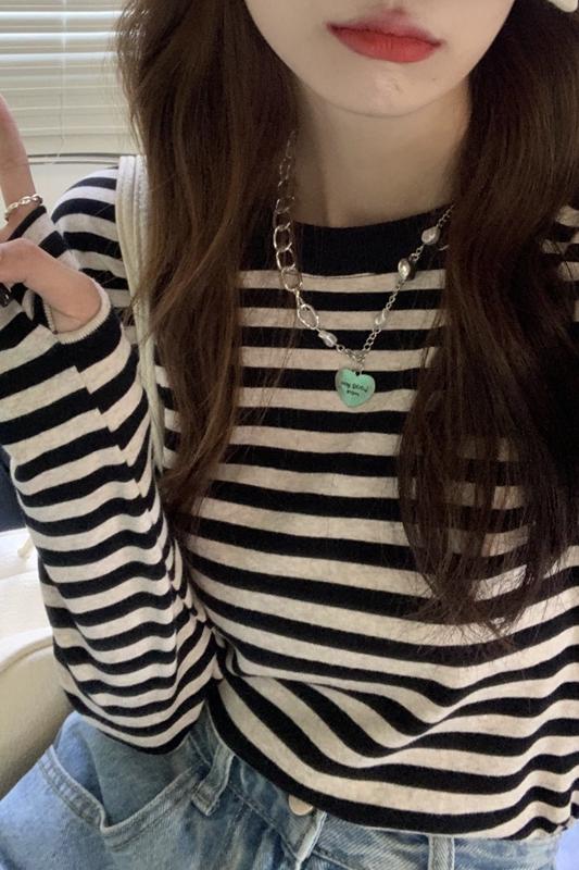 실제 가을 가을 한국어 버전 느슨한 단색 생선 뼈 디자인 및 기질 6 양모 내부 니트 긴팔 탑