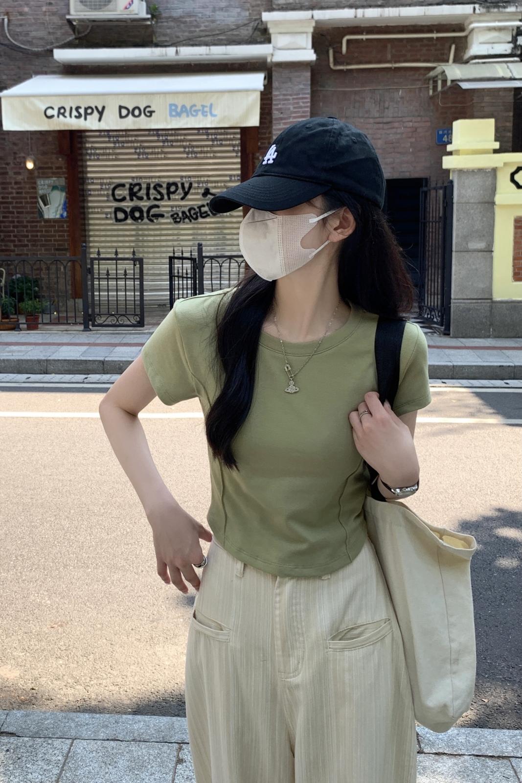 실제 사진 여름 라운드 넥 렌더링 초록 세련