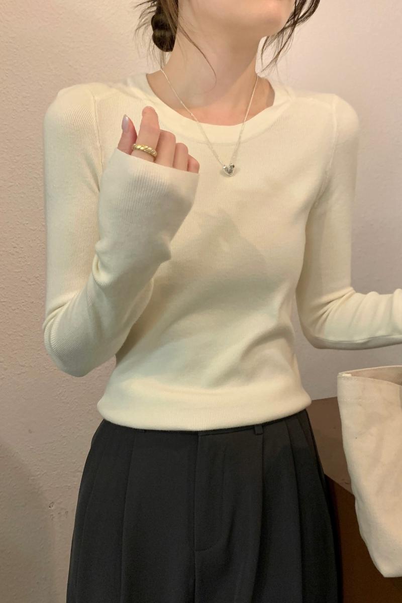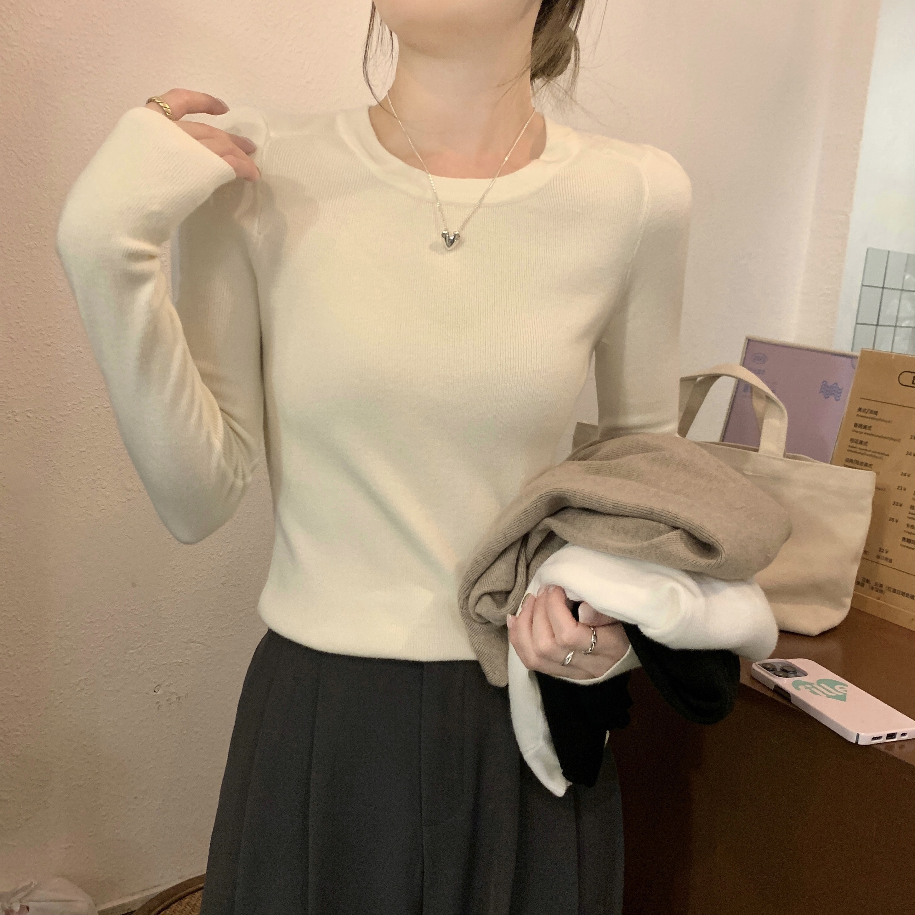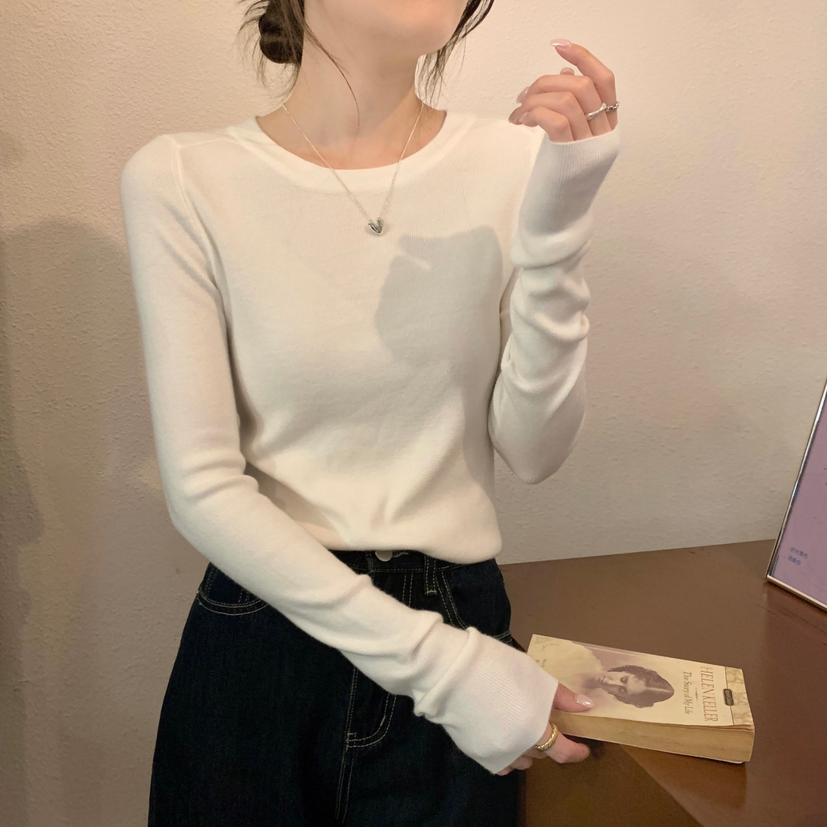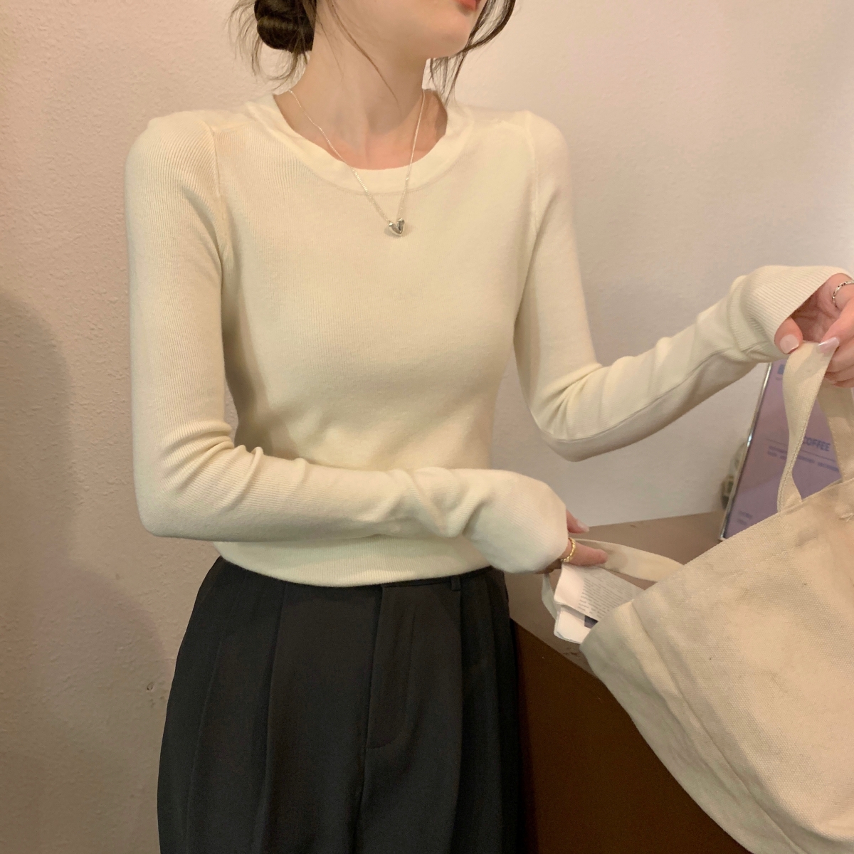 부드러운 샷 실제 가을 가을 의 슬림 한 단색 버튼 불규칙 디자인 니트베이스 긴팔 여성 스웨터