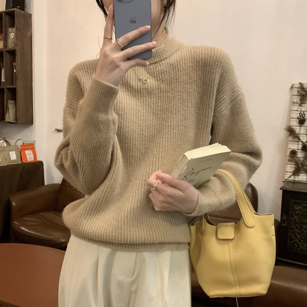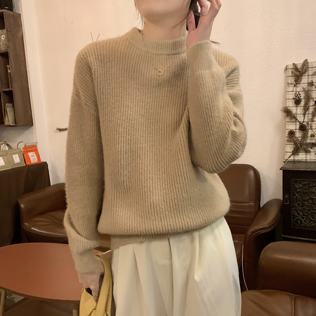 실제 사진 및 한국 스타일 느슨한 기질 지퍼 풀 오버 두꺼운 피트 스틱 스웨터 속옷