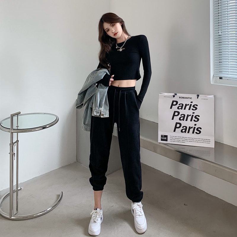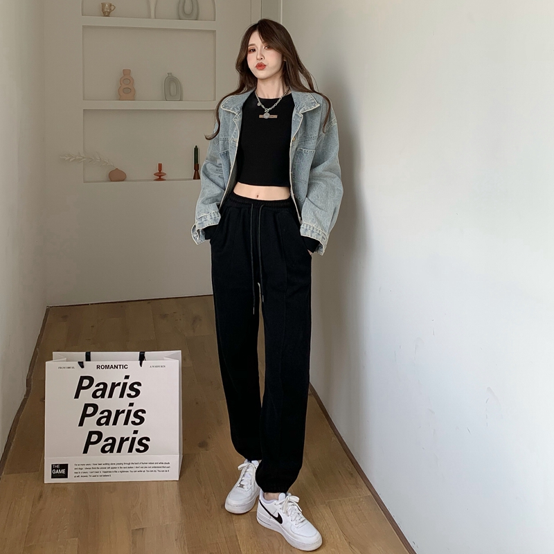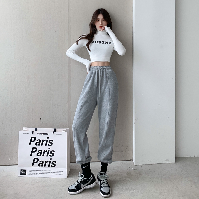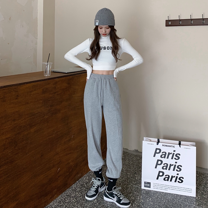 겨울 홍콩 스타일의 진짜 사진 고상하고 슬림 한 타이 플러스 벨벳 두꺼운 스포츠 캐주얼 스웨트 팬츠 하렘 바지 트렌디