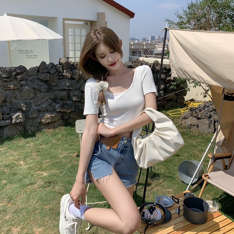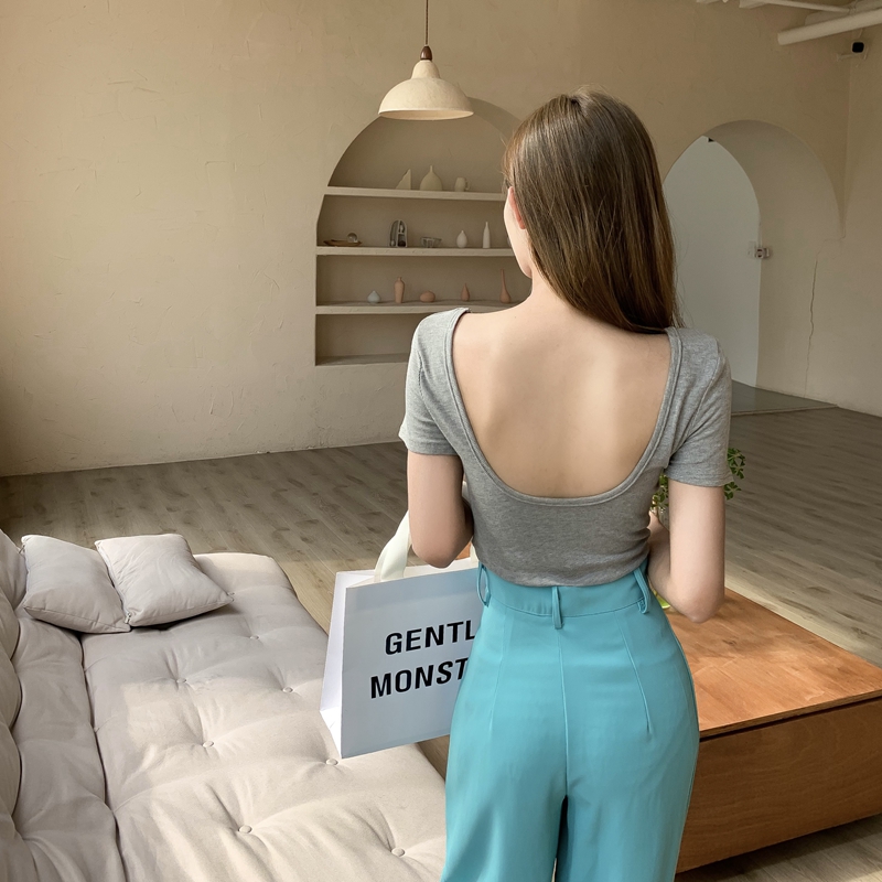 홍콩 스타일의 핫 걸 스타일 U-Neck 여름에 여성을위한 짧은 뒤쪽 티셔츠