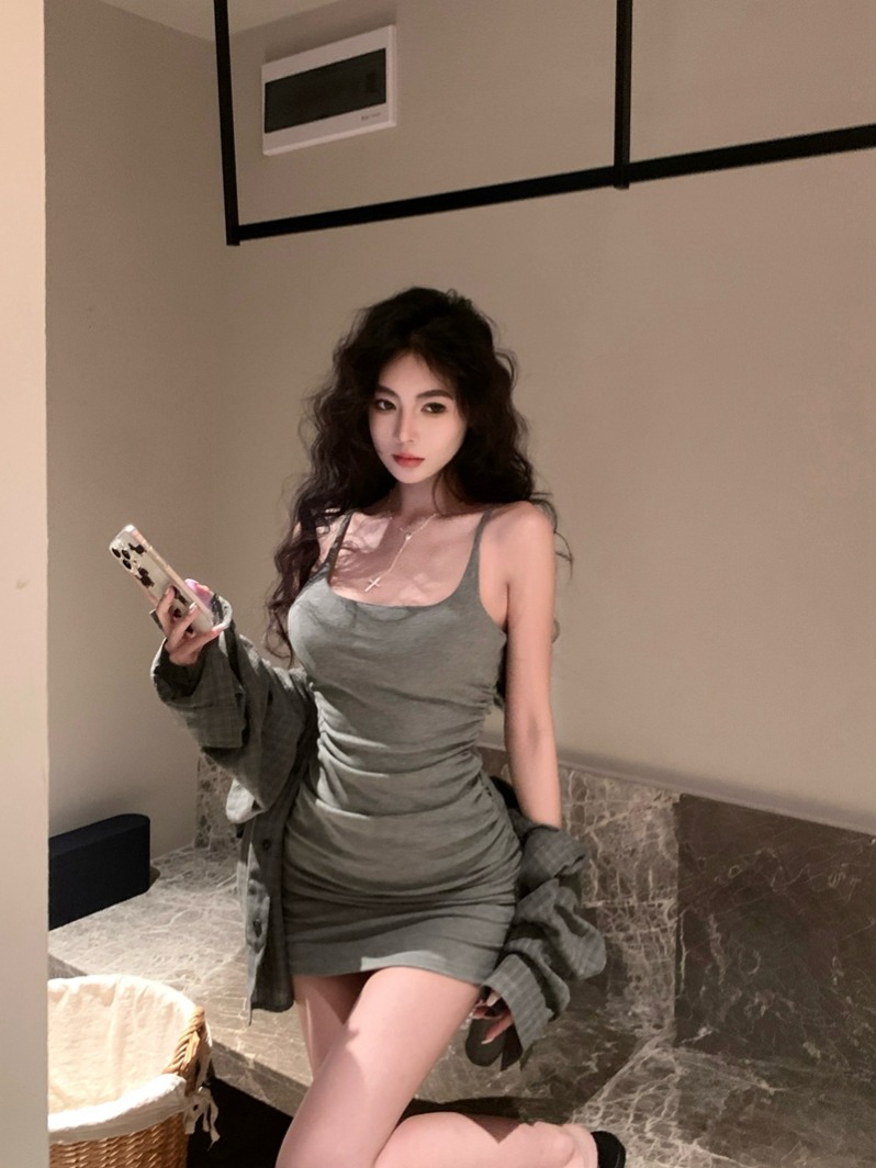 가슴 패드 주름 허리와 슬리밍 엉덩이 서스펜더 드레스를 입고 브래지어를 착용하지 않고 실제 가격 여름 달콤한 뜨거운 여자 스타일